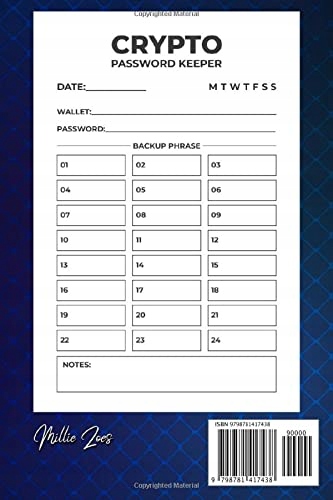 Крипто -пароль и резервная фраза Keper: 120 страниц восстановления кошелька для написания личных списков фраз личного восстановления мнемонические клавиши семян в блокноте криптовалюты 6x9 для безопасного хранения холодного хранения