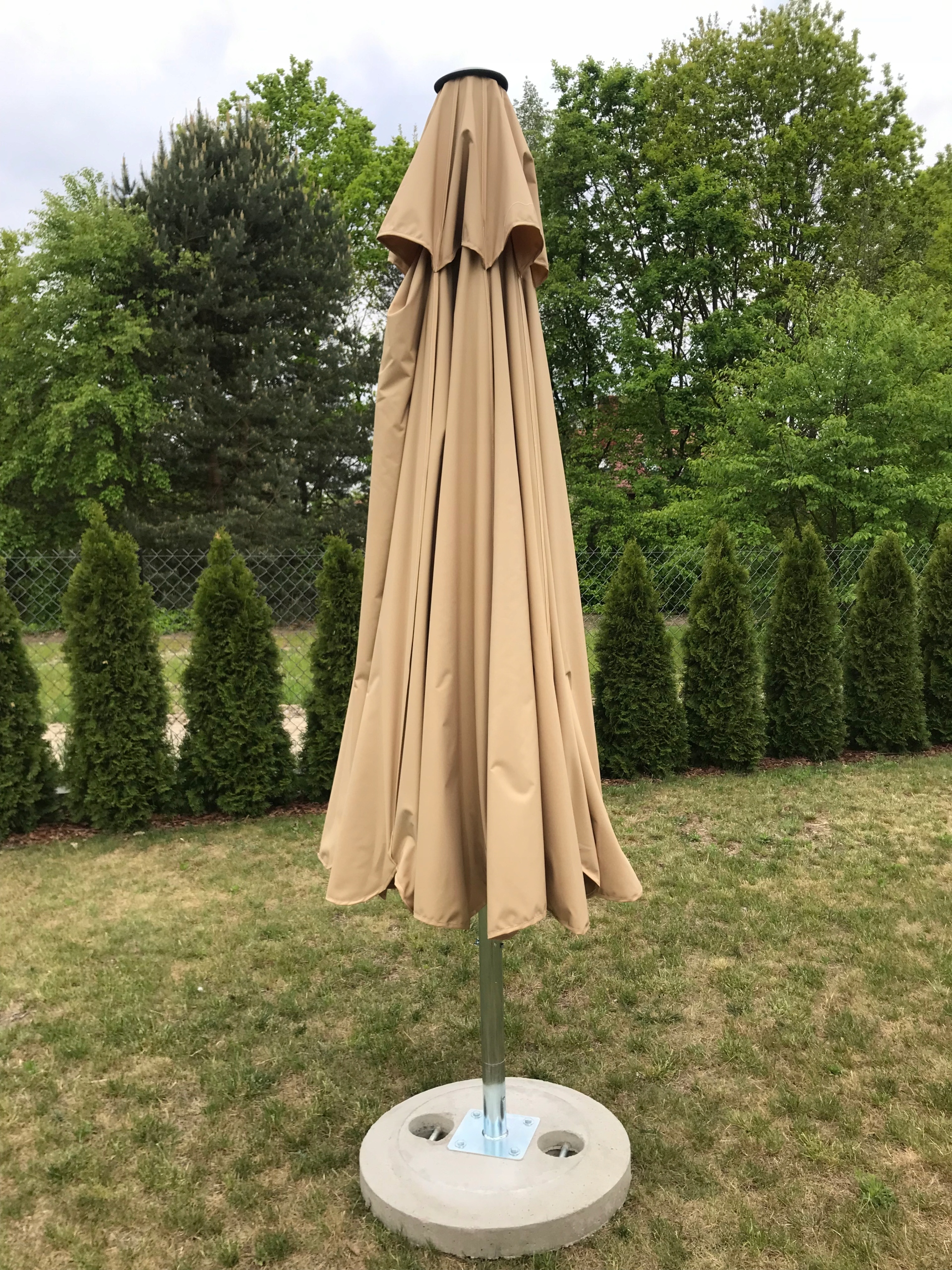 В настоящее время предлагается зонт без основания. На других наших аукционах представлены зонты других размеров: с основанием 70 кг и основанием 170 кг.