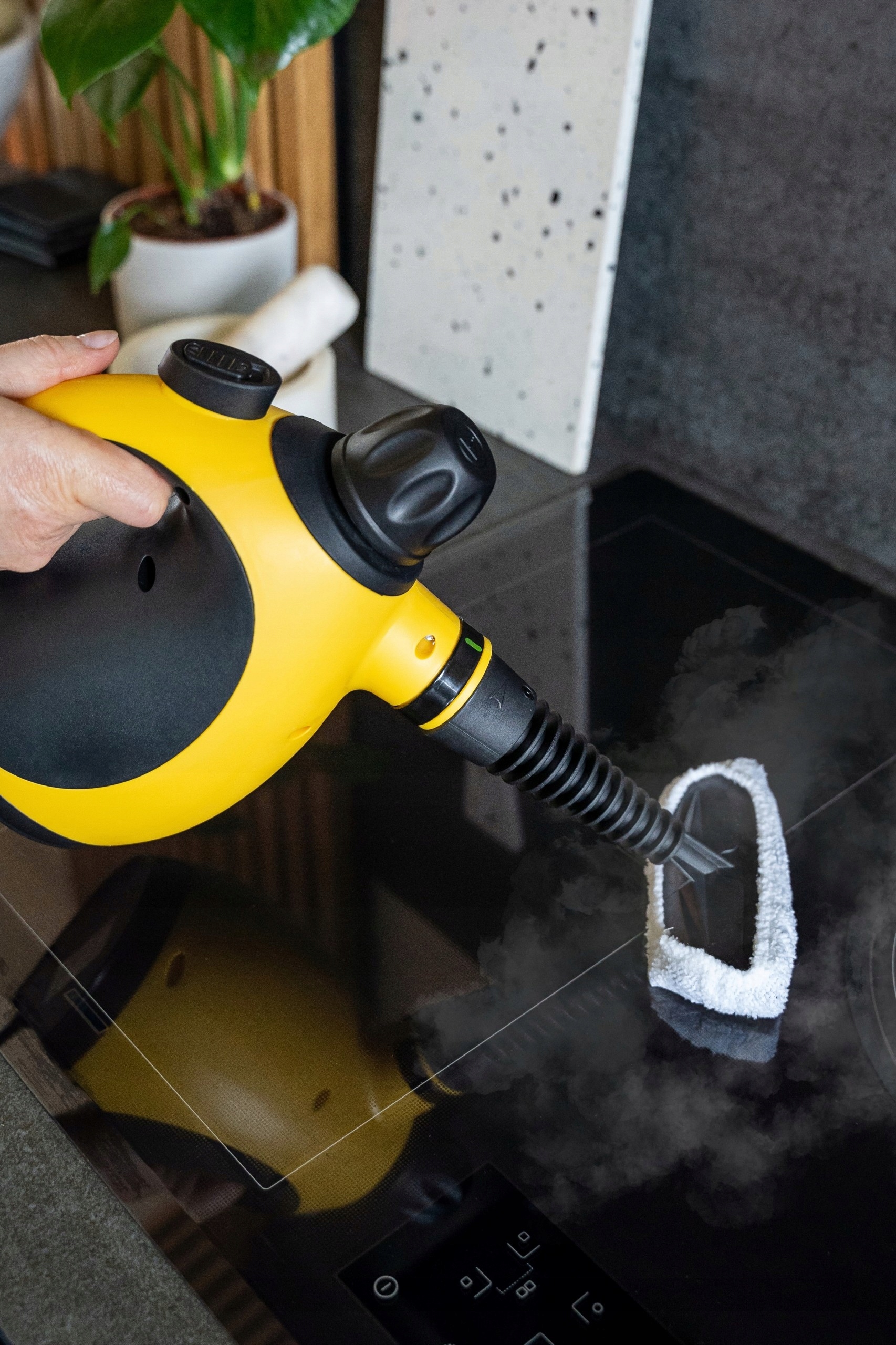 Оснащенный различными насадками, такими как жесткая щетка, маленькая круглая щетка, экстрактор для стекла и насадки, пароочиститель Kalorik подходит для очистки широкого спектра поверхностей. От окон и зеркал до обивки и швов – это универсальное средство для комплексной уборки.