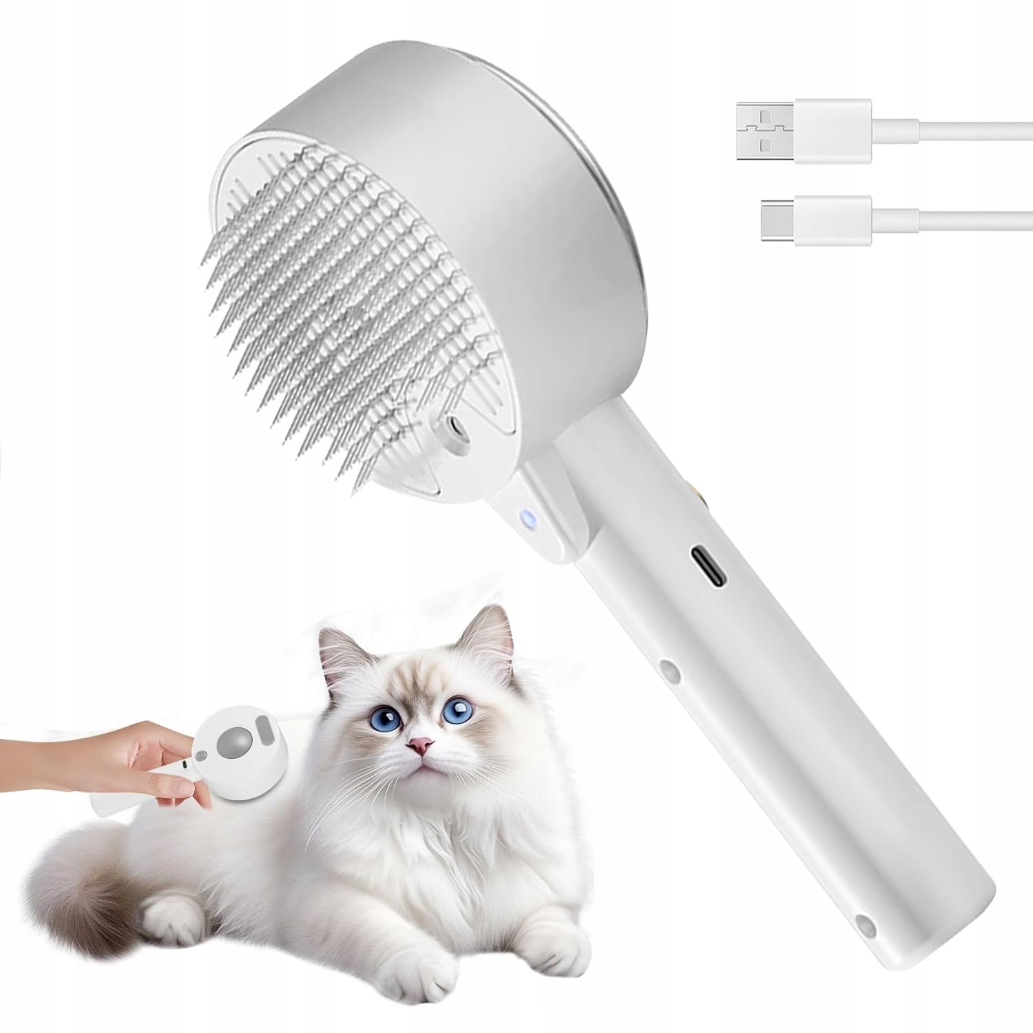 Кошачья щетка с паром, кошачья паровая щетка 4 в 1, кошачья щетка с водой, чистка шерсти домашних животных от щетки с помощью одной кнопки, кошачья щетка, щетки для волос для собак и кошек (белые)