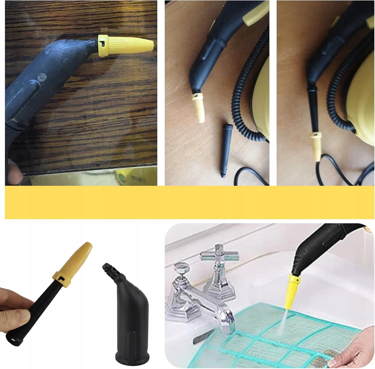 - Удлиненные и изогнутые насадки значительно повышают эффективность очистки пятен, облегчая очистку швов, углов, кромок и других труднодоступных мест.