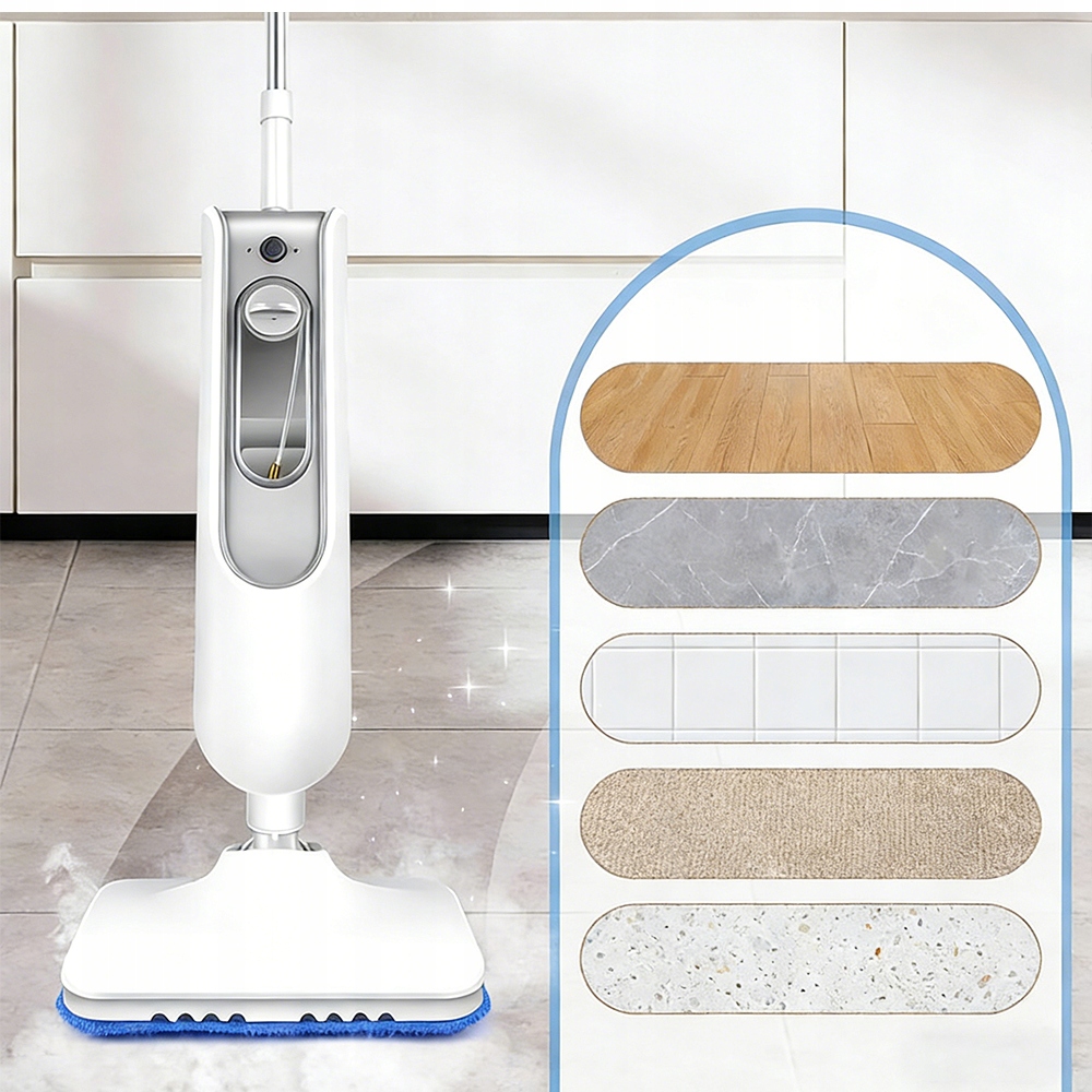 прекрасно очищает различные типы полов (деревянные, керамическая плитка, ковры, мрамор), а также мебель, одежду, плиты, раковины и труднодоступные места.