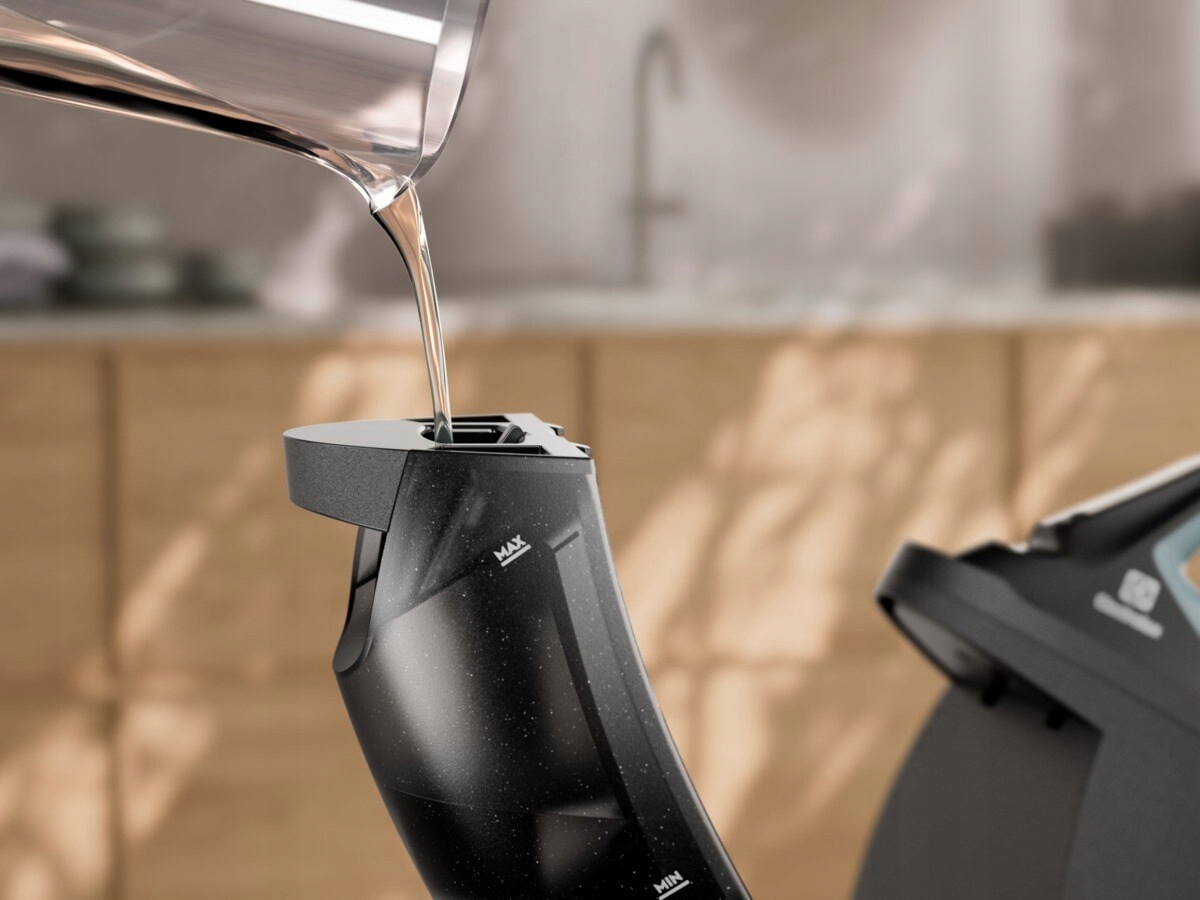 Большой резервуар для воды емкостью 1,2 литра позволяет гладить больше белья за один раз. Гладьте дольше и реже доливайте воду.