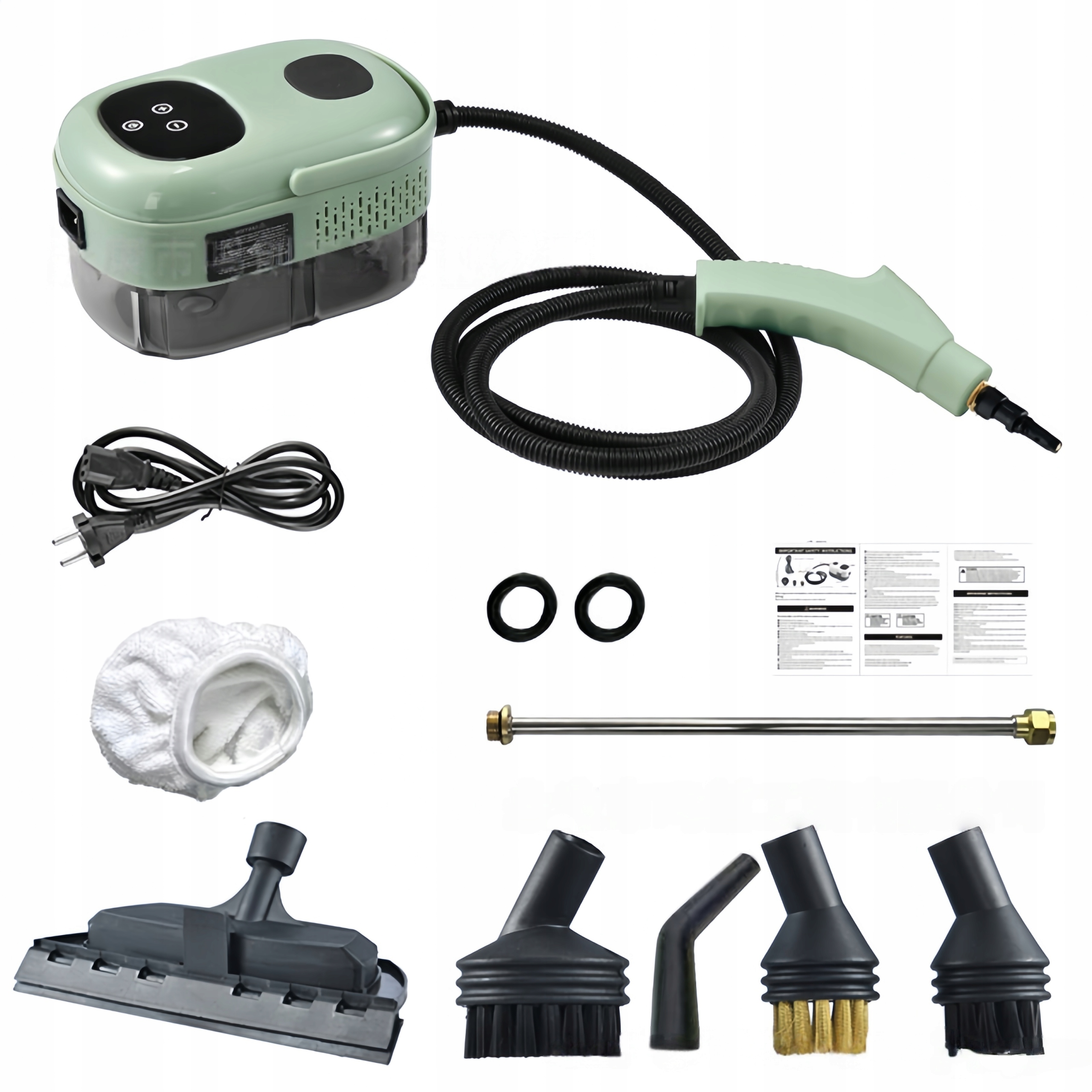 • В комплект поставки входят: паровой пылесос ×1, удлинитель ×1, насадка ×1, 3 специальные насадки щетки ×1, скребок ×1, тканевый чехол ×1, прокладки ×2, шнур питания европейского стандарта ×1, руководство пользователя ×1