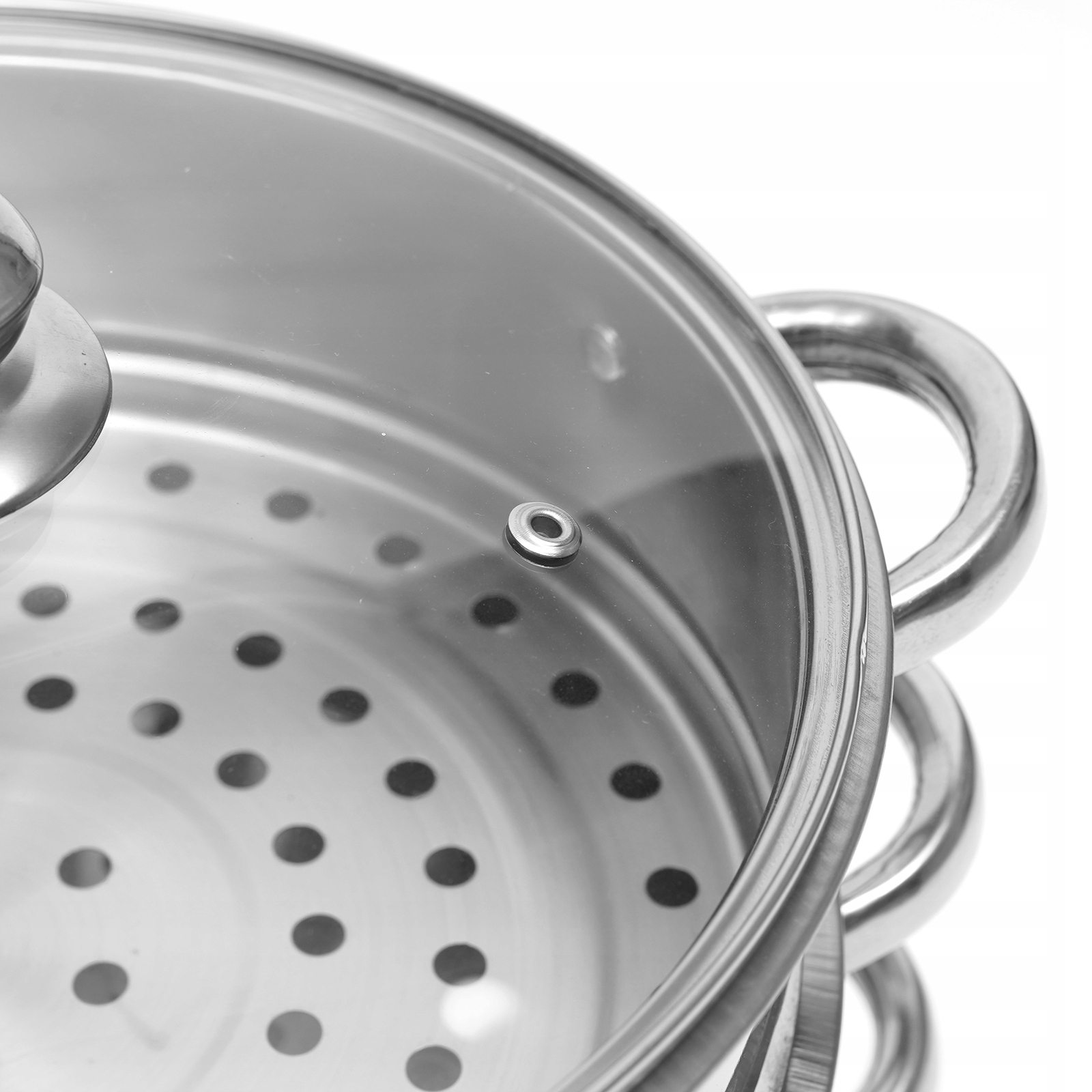 Эта пароварка диаметром 26 см/10 дюймов изготовлена из пищевой полированной нержавеющей стали, с трехслойным композитным дном для равномерного нагрева и зашифрованными отверстиями паровой камеры для быстрой циркуляции пара для более быстрого приготовления пищи.