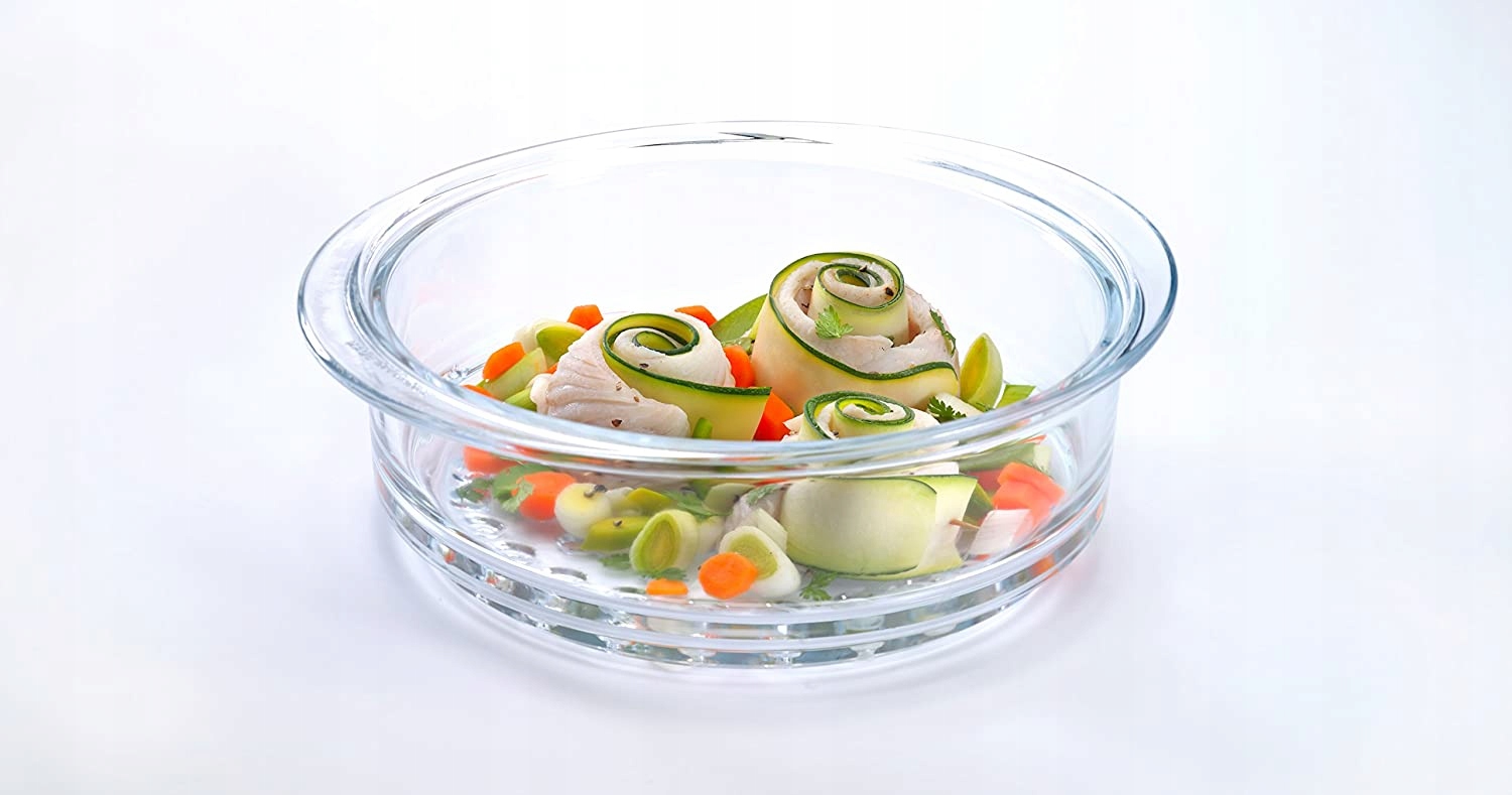 Вставка для приготовления на пару изготовлена из термостойкого стекла.