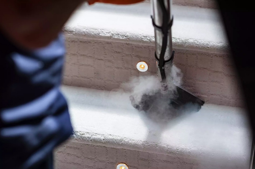 Профессиональный парогенератор со встроенным жидкостным пылесосом, который растворяет все виды жира и грязи, удаляя все сразу, оставляя поверхности чистыми, продезинфицированными и идеально сухими.