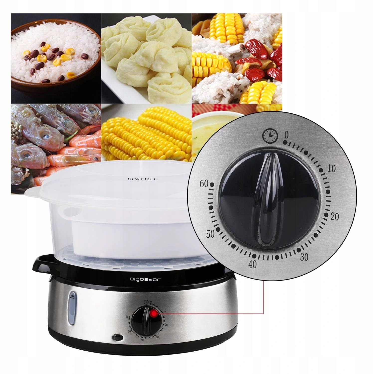 Parowar Aigostar 30INA 9 l srebrny/szary 800 W