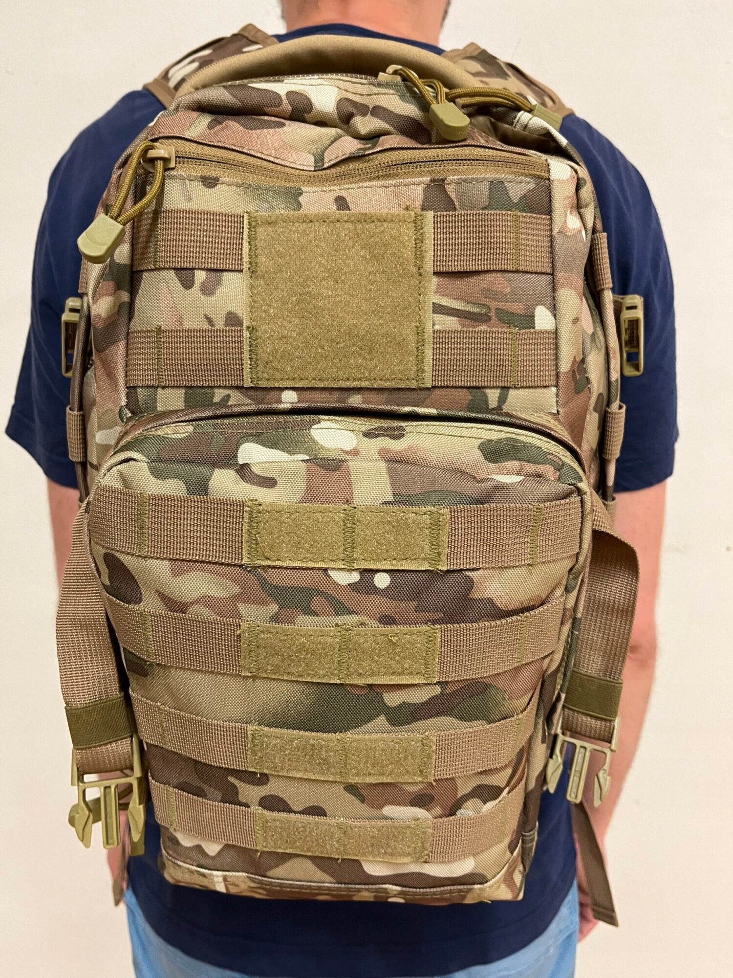 Компактный, качественный и очень эргономичный рюкзак. Сохраняет форму и имеет дополнительные лямки для комфортного ношения. Мягкие лямки и анатомический наполнитель сзади, множество отделений на молниях для полезных тактических и гражданских вещей, система MOLLE для крепления дополнительного снаряжения, места-липучки спереди и на лямках. В целом это один из лучших небольших тактических рюкзаков.