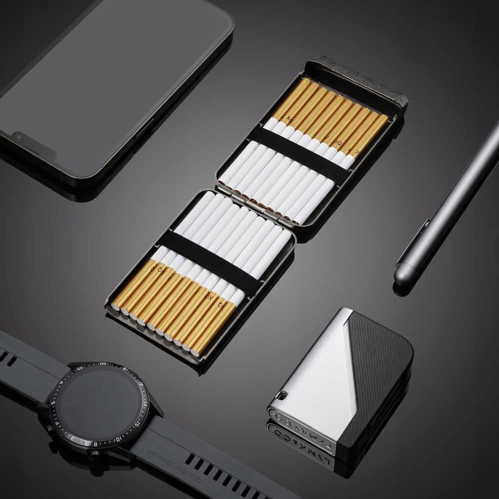 p>【ПРУЖИННАЯ КНОПКА И ЗАЖИМ ДЛЯ СИГАРЕТ】Портсигар имеет пружинную кнопку, которая позволяет открывать и закрывать портсигар одной рукой. В то же время зажимы для сигарет с обеих сторон коробки для сигарет могут эффективно предотвратить падение, соскальзывание или потерю сигареты при открытии коробки для сигарет.