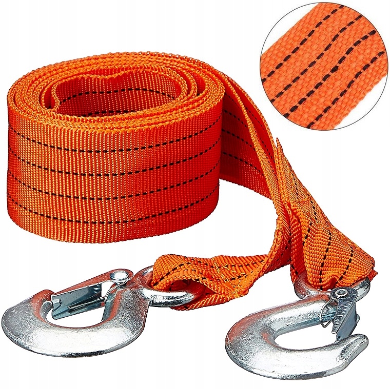 Качественный, прочный, долговечный буксирный трос с лямкой с ремнями безопасности, предназначенный для буксировки автомобилей массой не более 4000 кг.