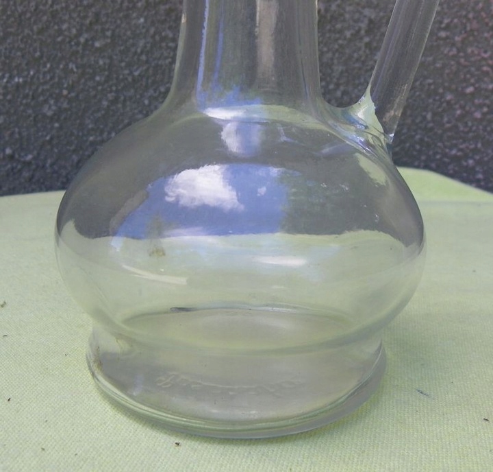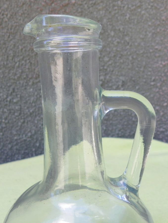 Интересная стеклянная бутылка для оливкового масла, произведенная на знаменитом турецком стекольном заводе Пасахче в 1930 году. Бутылка была сформирована вручную в горячем виде. Нижняя часть слегка выпуклая. Верхняя часть более узкая и цилиндрическая. В самом верху экспонат имеет воронкообразное завершение. У бутылки интересная, интересно сделанная ручка. Экспонат имеет подпись и нумерацию внизу, которые видны на фотографиях. Всем рекомендую.