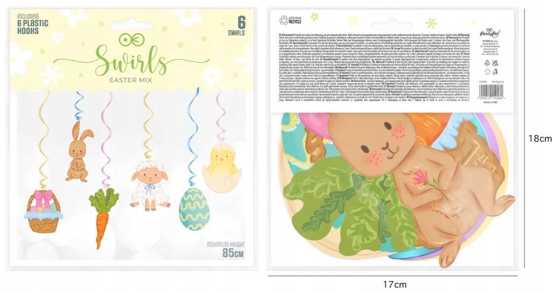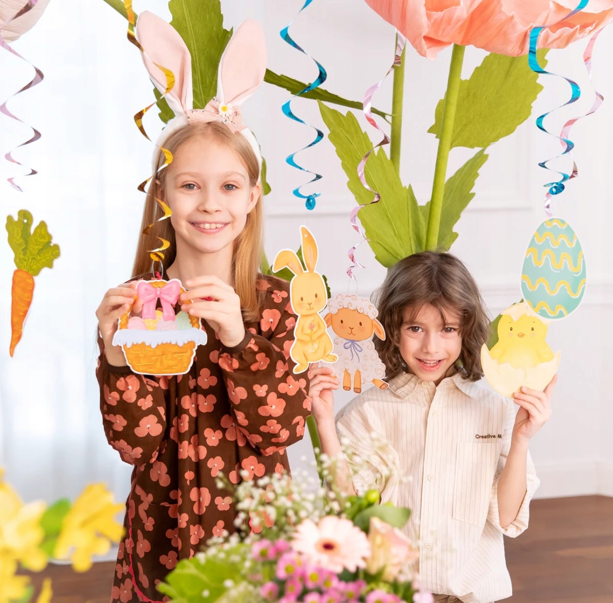 Декоративные Пасхальные сверла — идеальное украшение для новогодней вечеринки, дома или детского сада! В комплект входят красочные подвески с Пасхальными мотивами - зайчик, яйцо, цыпленок, овечка, морковка и корзинка, которые красиво вращаются в воздухе, создавая радостную атмосферу праздника.