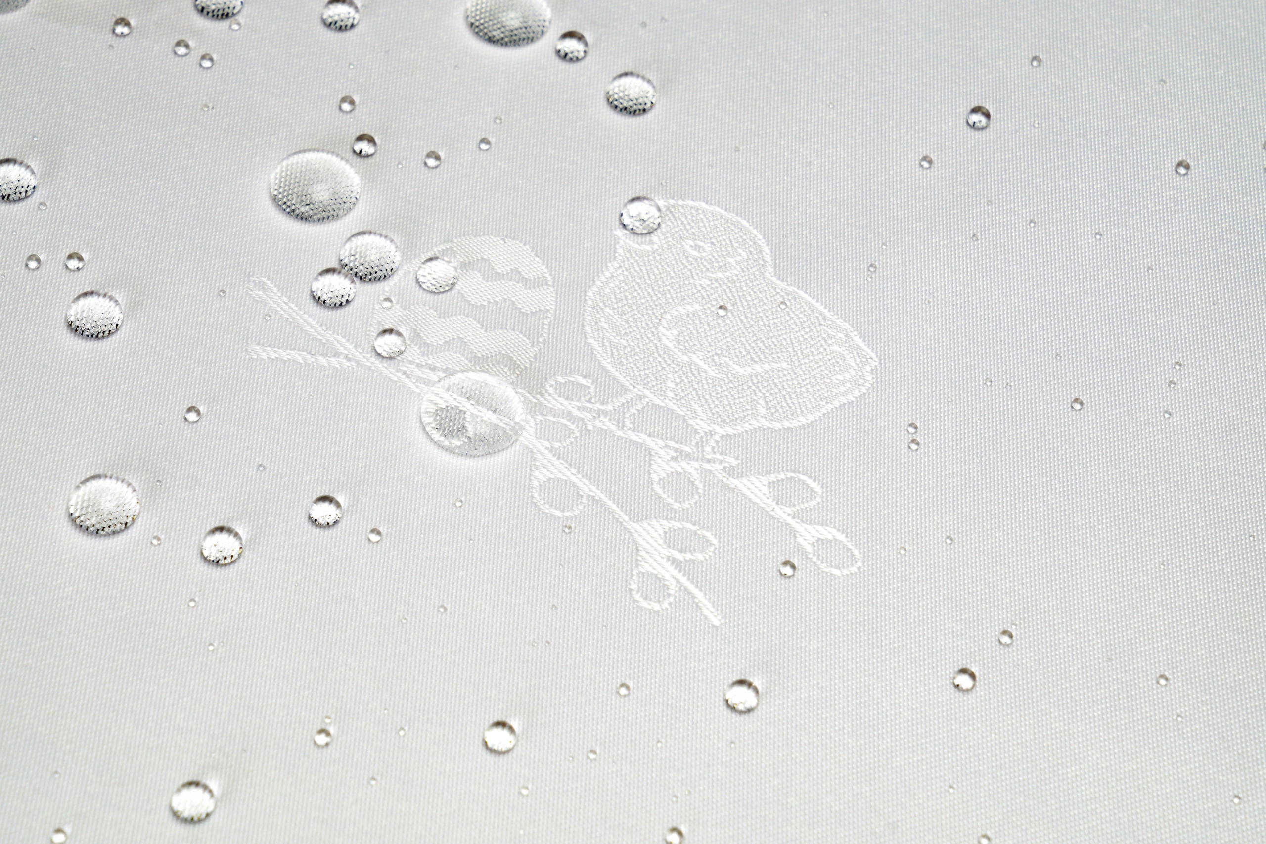 скатерть из полиэстера, залившего супа, жира, чай не поглощается (потирание под блюдом).
