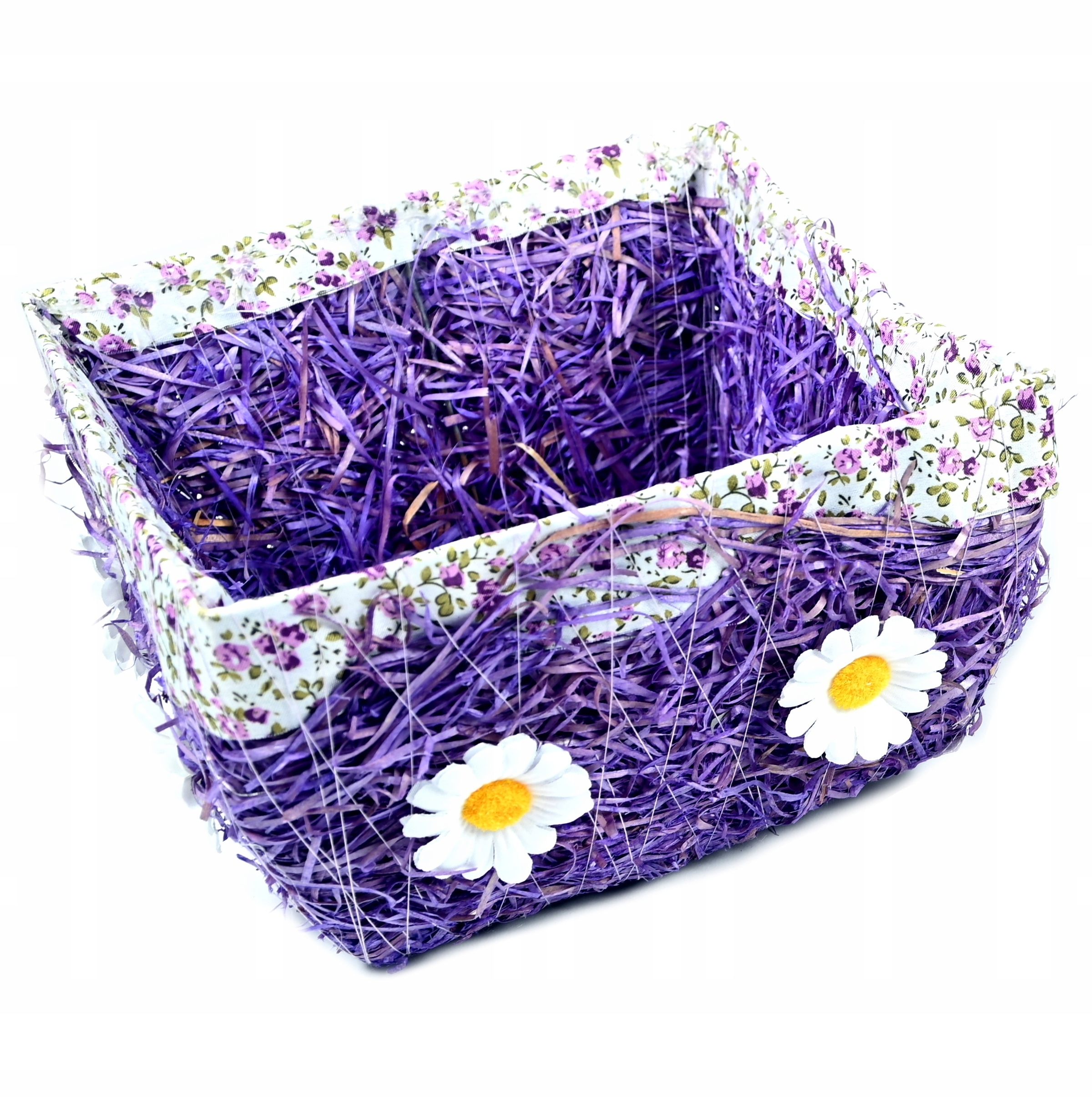 Пасхальная корзина из металлической рамы и пластика, подражающего сеном.