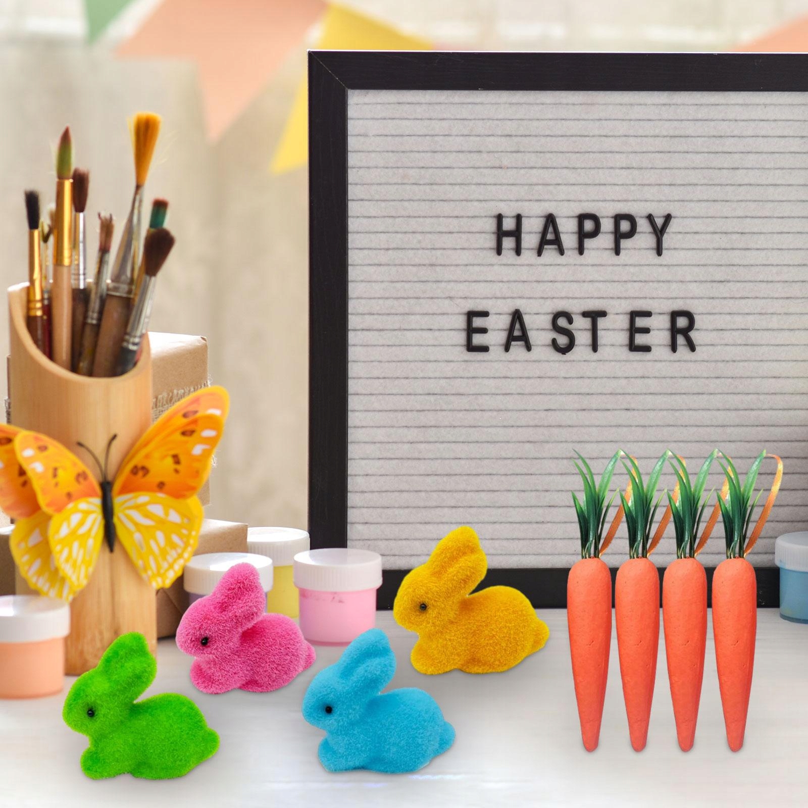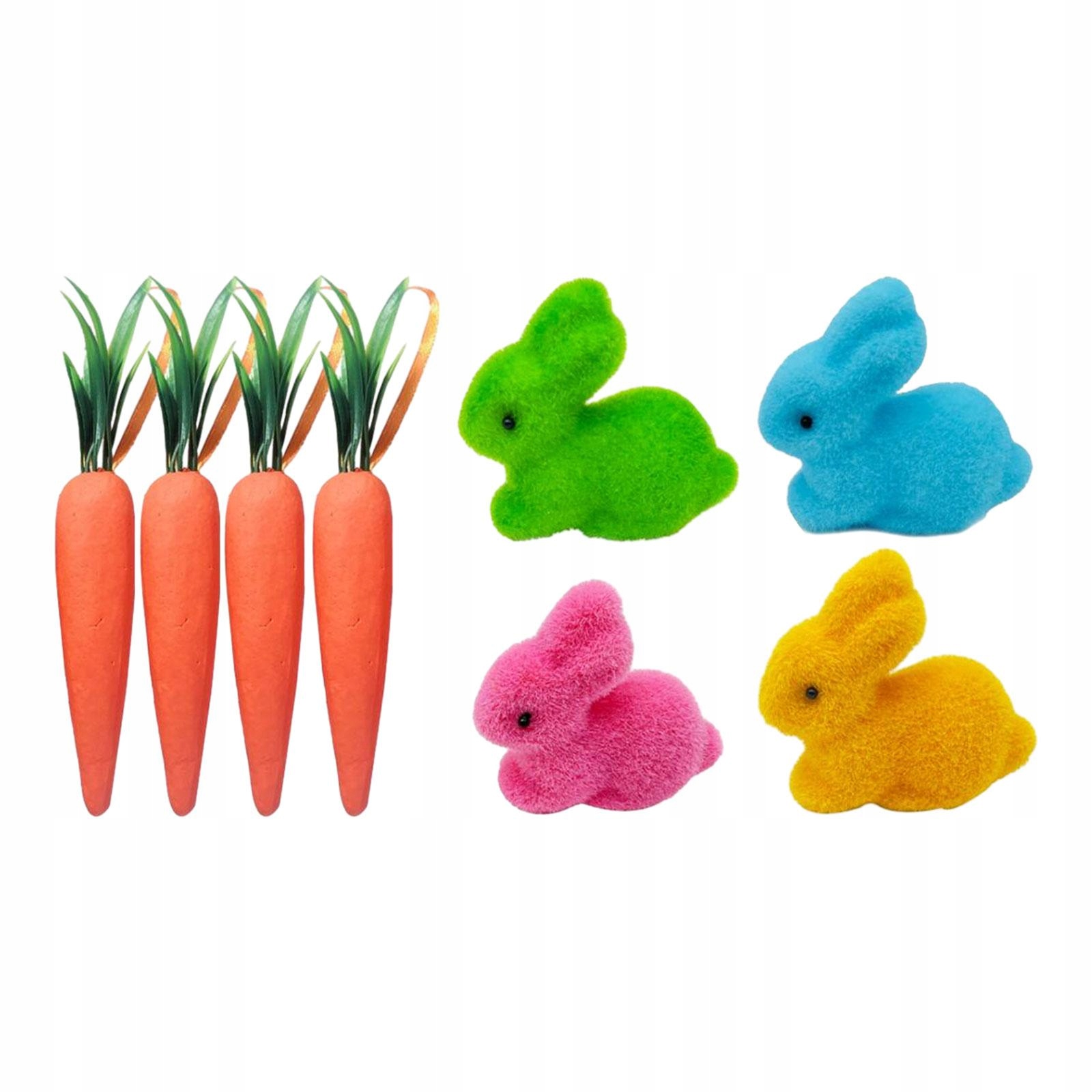 [Содержимое упаковки]: в каждый набор входят 4 кролика и 4 кролика. морковь, которая является законченным декоративным решением для празднования Пасхи. Идеальный подарок для детей и пасхальное украшение.