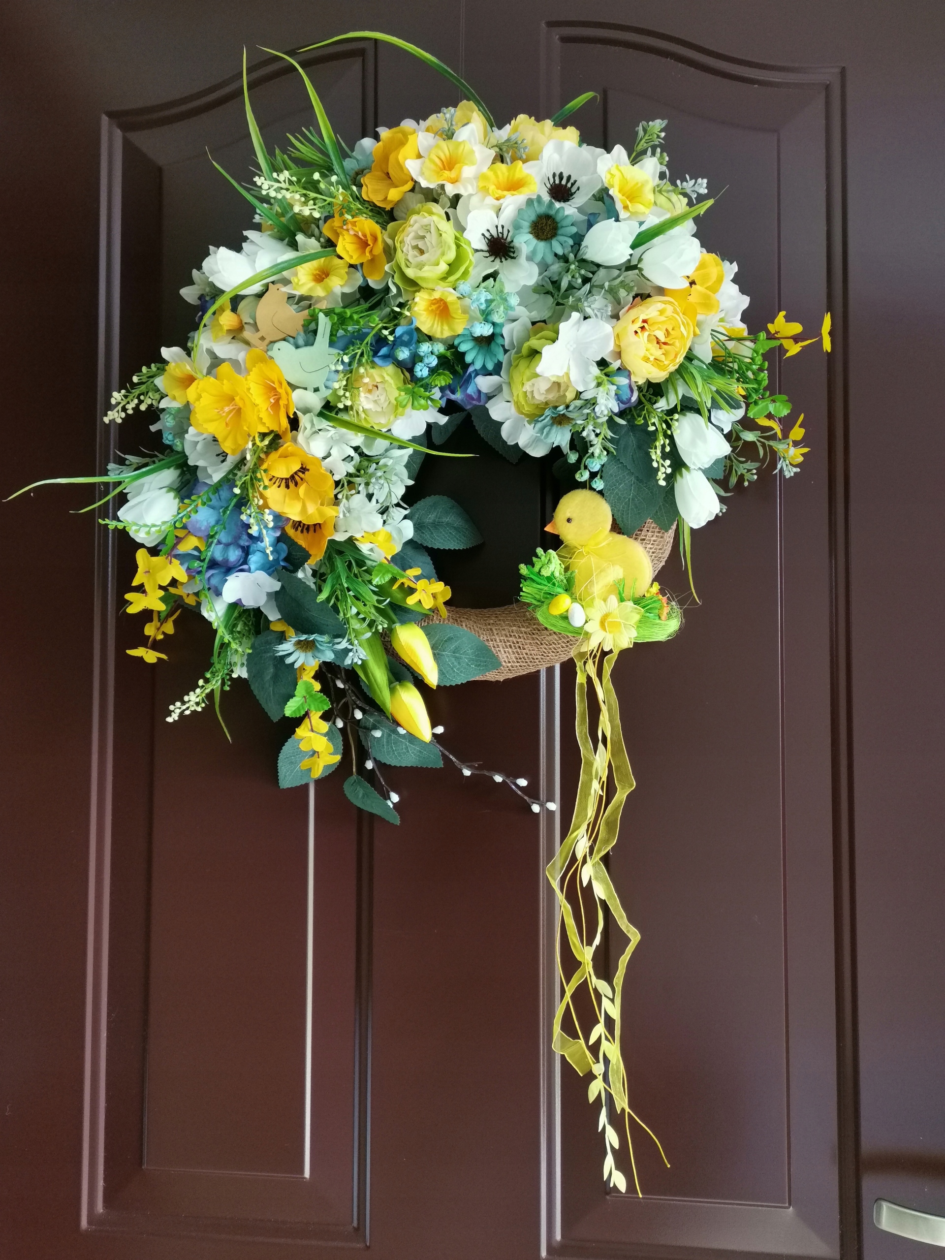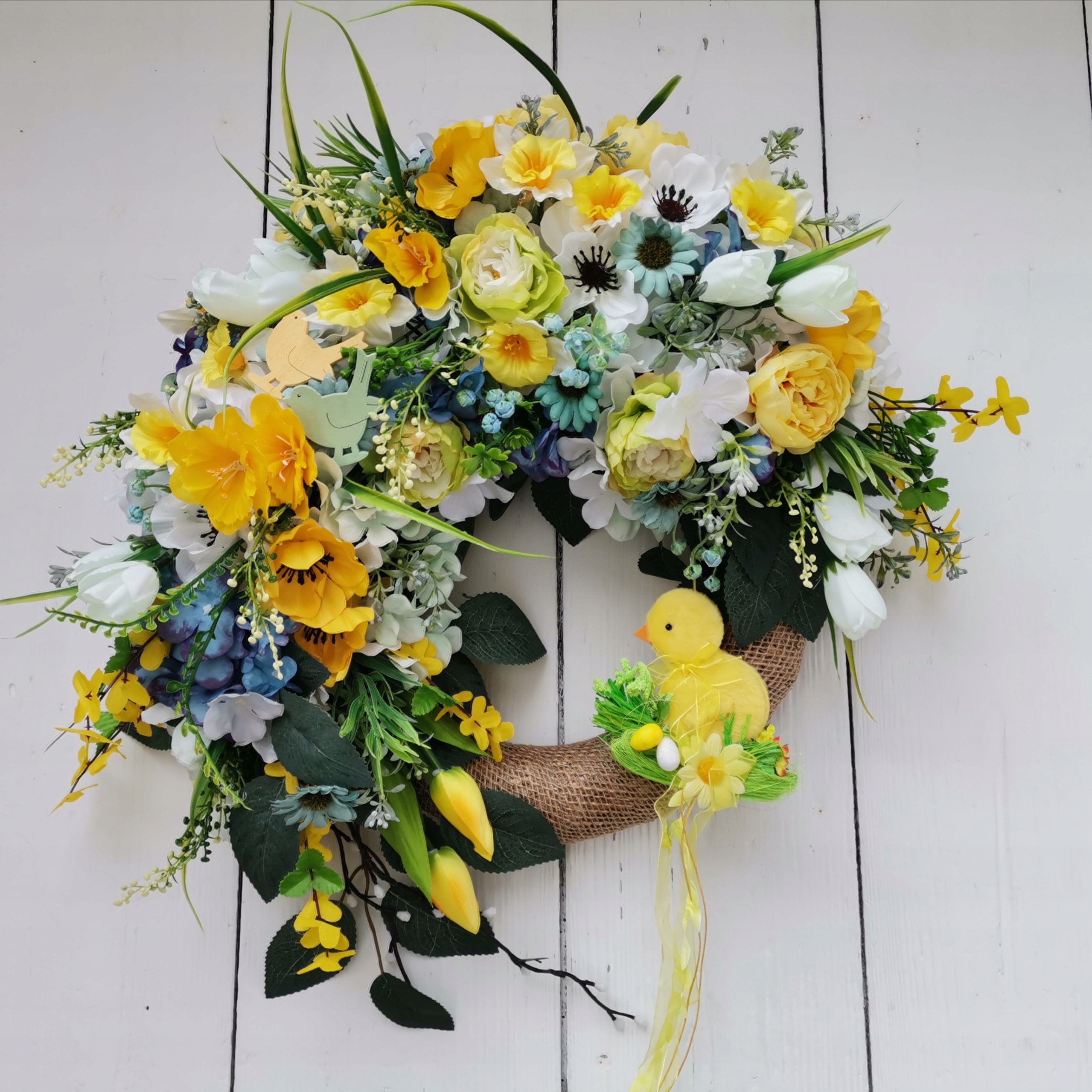 Пасхальный весенний венок для двери, красочные куриные желтые цветы