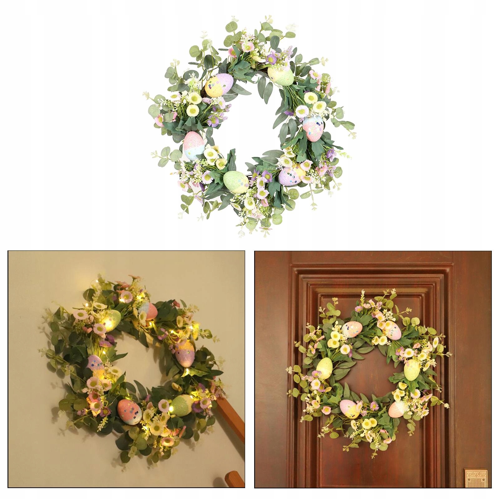 18-дюймовый пасхальный венок из яиц с декоративной гирляндой с животными ветвями ромашек и эвкалипта делает его синонимом новой звезды
