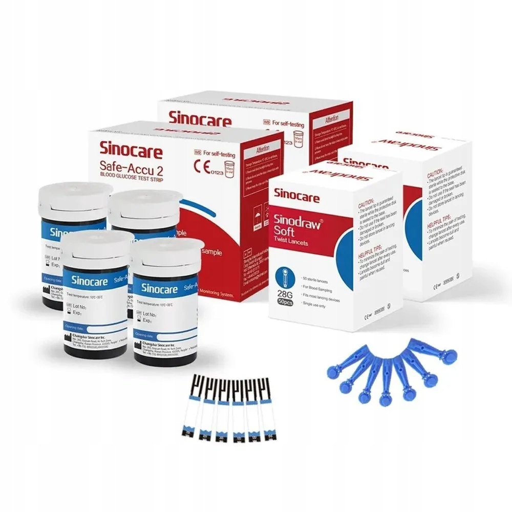 Паски тестові до глюкометра Sinocare SAFE ACCU2 - 100 пасок і 100 ланцетів