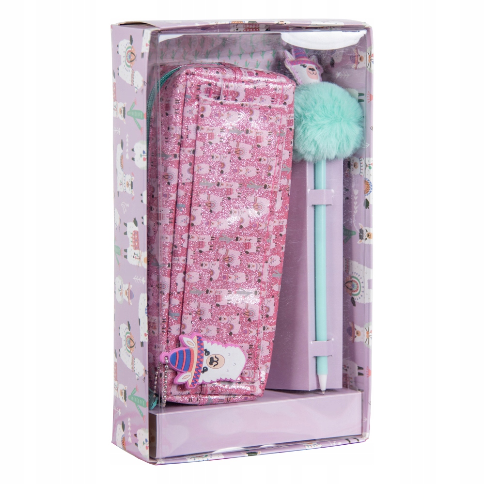 Пенал с блестящей ручкой Paso Lama привлекает внимание своей блестящей структурой, стильным цветом и модным мотивом ламы.