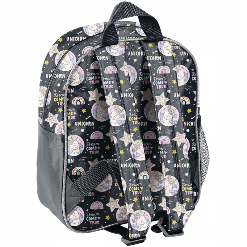 имеет удобные, регулируемые брекеты и держатель подвески по цвету. рюкзак один -сайт , и, с одной стороны, он имеет карман сетки для бутылки с водой или других безделушек. Черный цвет и украшен печати с мотивом единорога