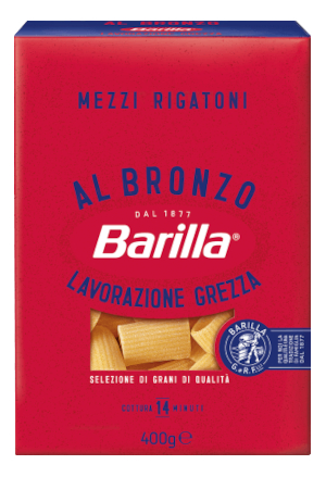 Мецци Ригатони относятся к типичным формам макарон итальянской традиции. Эти макаронные изделия созданы для того, чтобы гарантировать превосходные вкусовые ощущения: они характеризуются просторной формой благодаря большему диаметру и более характерным бороздкам на поверхности пасты. Специальный бронзовый рисунок, благодаря методу Raw Processing, придает макаронам интенсивную шероховатость, идеальную для сбора соусов. Идеально сбалансированный формат, обеспечивающий неповторимые вкусовые ощущения!