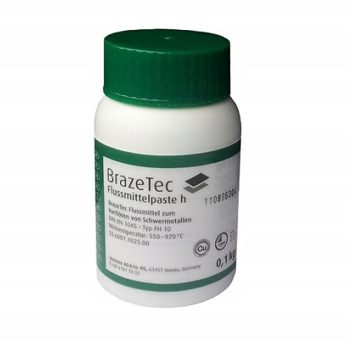 Флюс в виде пасты по DIN EN 1045-FH10, предназначенный для пайки меди, латуни, бронзы, а также обычной и нержавеющей стали.