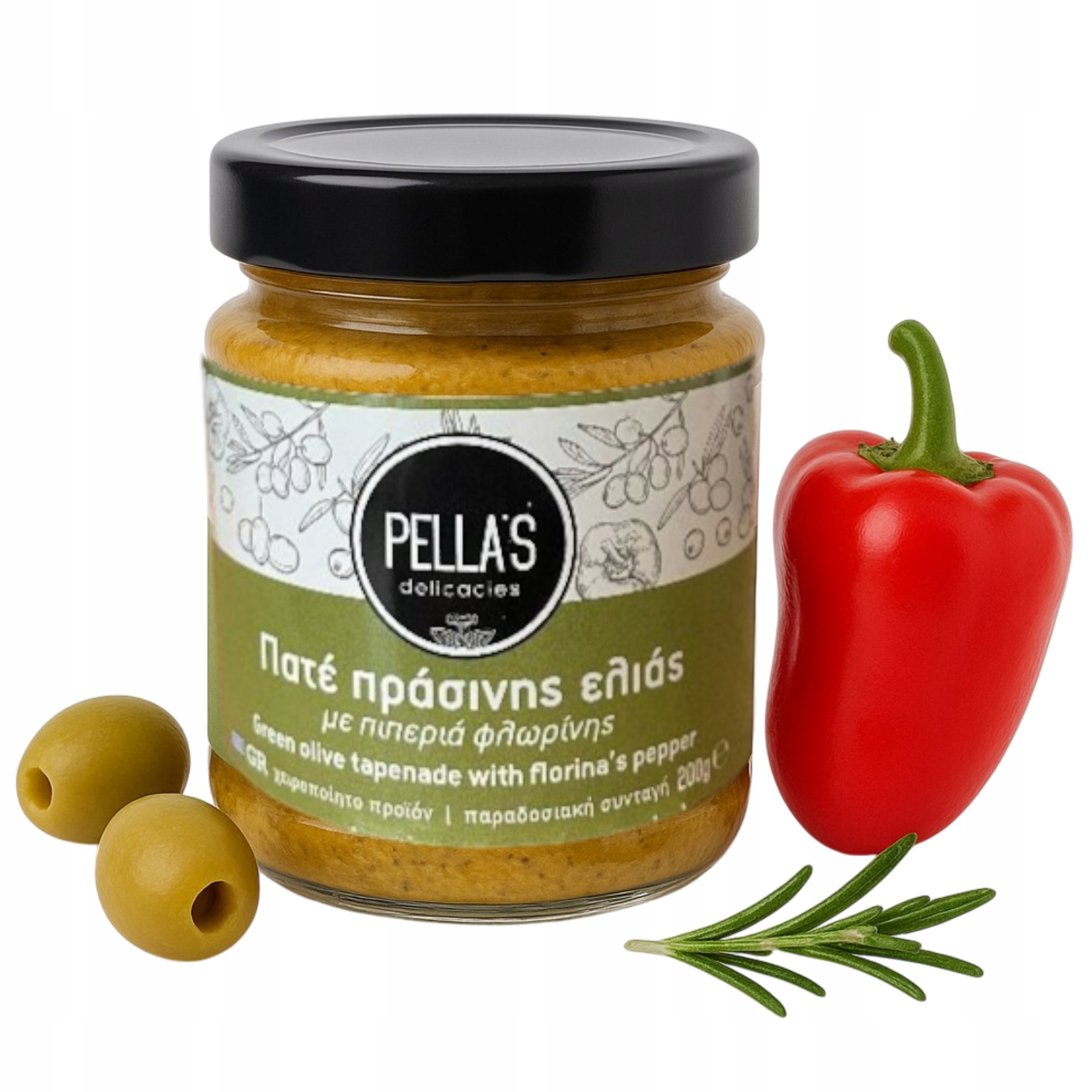 ПАСТА ІЗ ЗЕЛЕНИХ ОЛИВОК З ПЕРЦЕМ 200Г ТАПЕНАДА ОЛИВКОВА PELLA'S З ГРЕЦІЇ