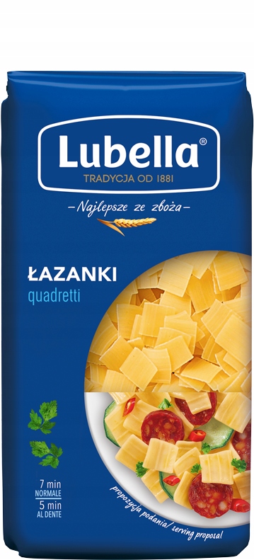 Просматривая «Паста Lubella Лазанки Quadretti 400г», вы можете быть уверены, что данный товар из каталога «Макароны» будет доставлен из Польши и проверен на целостность. В цене товара, указанной на сайте, учтена доставка из Польши. Внимание!!! Товары для Евросоюза, согласно законодательству стран Евросоюза, могут отличаться упаковкой или наполнением.