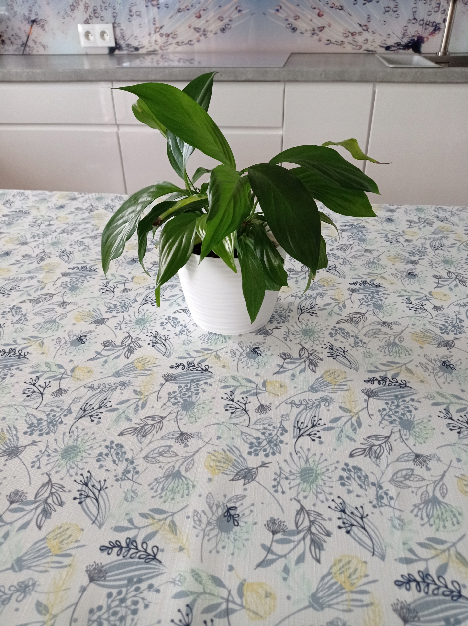Приятно в глаза, блестящая структура. Это хорошо расположено на столе. Средняя скатерть (170 +/- 12 г/м2), после промывки сохраняет свои параметры и жесткость.