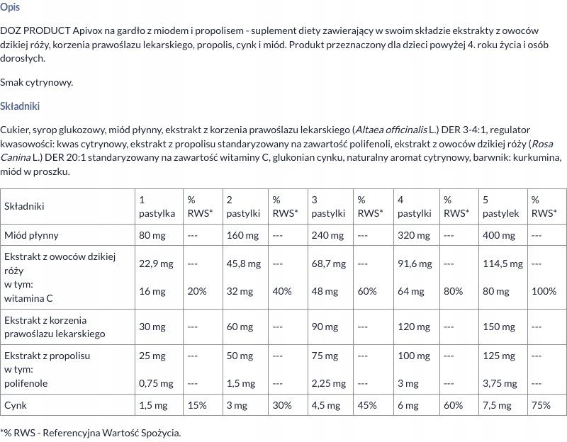 Apivox продукта DOZ для горла с медом и прополисом, таблетки для всасывания, 24
