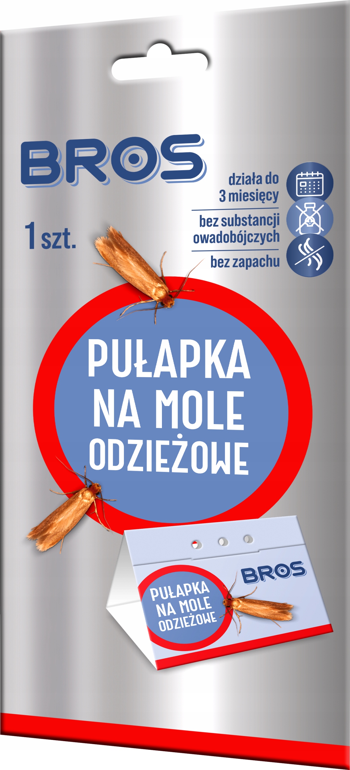 , что позволяет раннее обнаружение присутствия этих насекомых в комнате и оценивать их число. Наблюдение за молями, приклеенными к ловушке, позволяет принять решение о возможном использовании соответствующего бренда продукта броцида для борьбы с ними, например, спрей Bros для моли. Присутствие даже одного взрослого человека из пристани для одежды в ловушке является указанием для использования такой подготовки