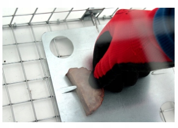 ЛОТОК ДЛЯ НАКОРОЧКИ ИМЕЕТ СПЕЦИАЛЬНЫЕ КРЮЧКИ ДЛЯ МЯСА - наши ловушки дополнительно оснащены крючками для протыкания мяса, так что животное не может снять его с лотка, не сдвинув его, но животное об этом не догадывается - оно думает, что мясо оно просто лежит на подносе и пытается его взять - сдвигает защелки и закрывает ловушку!! Крючки можно спрятать в землю. Таких крючков в этой ловушке два.