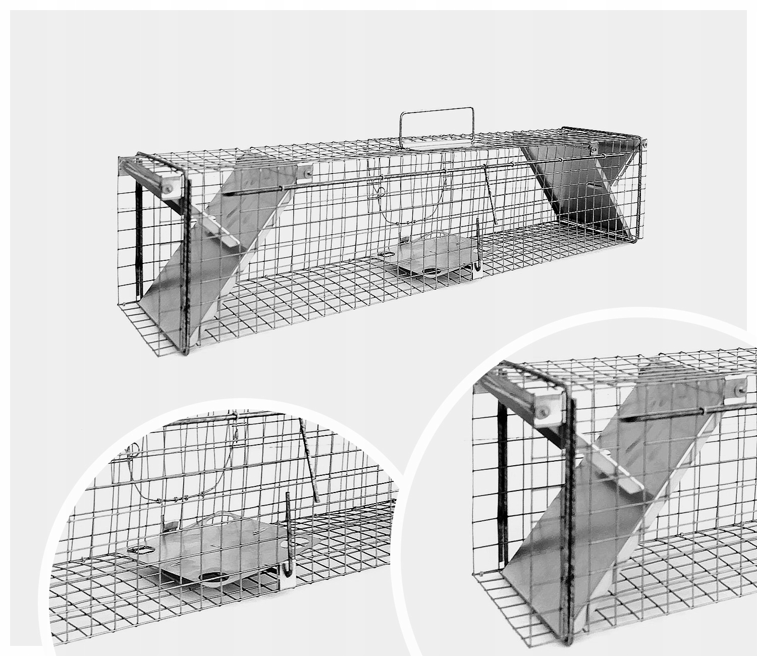 Живоловка изготовлена из высококачественной оцинкованной стали с повышенной коррозионной стойкостью. Толстые стальные проволоки армированы специальной сваркой, прочность которой значительно больше, чем требуется для поимки животных, для которых предназначена ловушка.