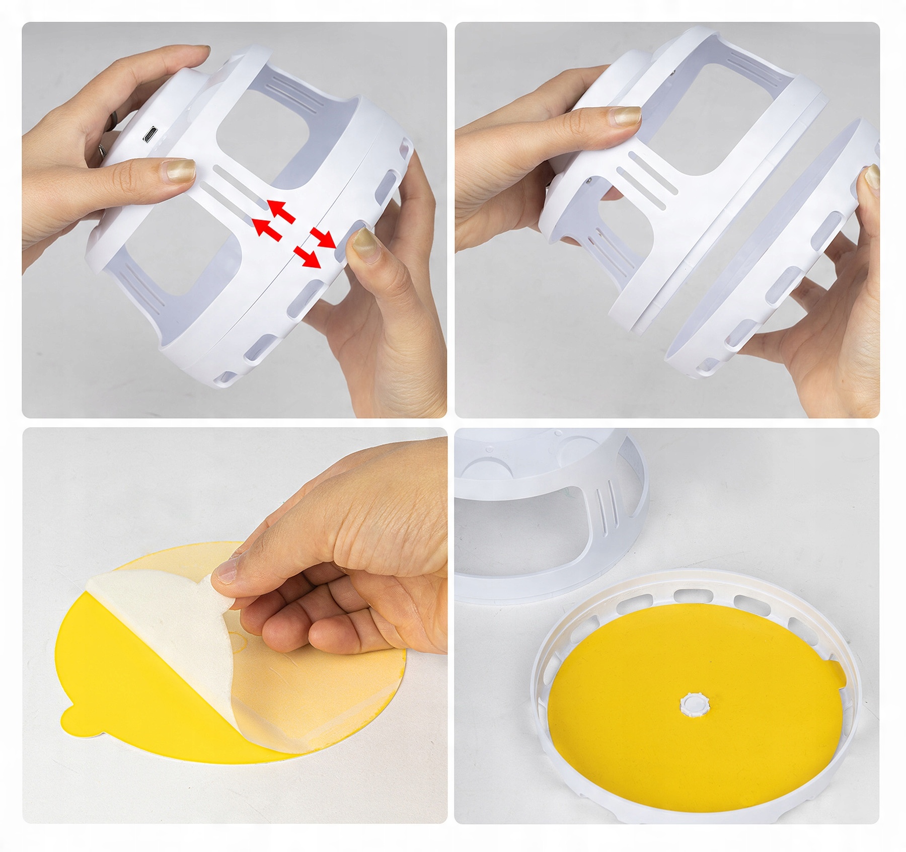 1. Удалите липкий лист картона (входит в комплект), снимите защитную пленку и прикрепите ее к нижней части ловушки.