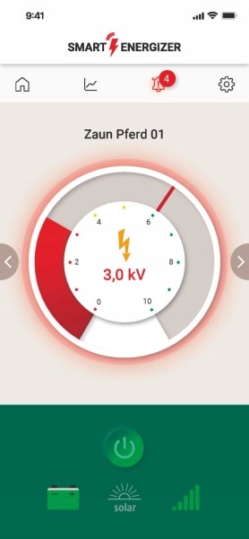 С помощью приложения вы можете включать и выключать ограждение, изменять пороговое значение тревоги (например, минимальный порог напряжения мониторинга можно установить отдельно) и регулировать выходную мощность.