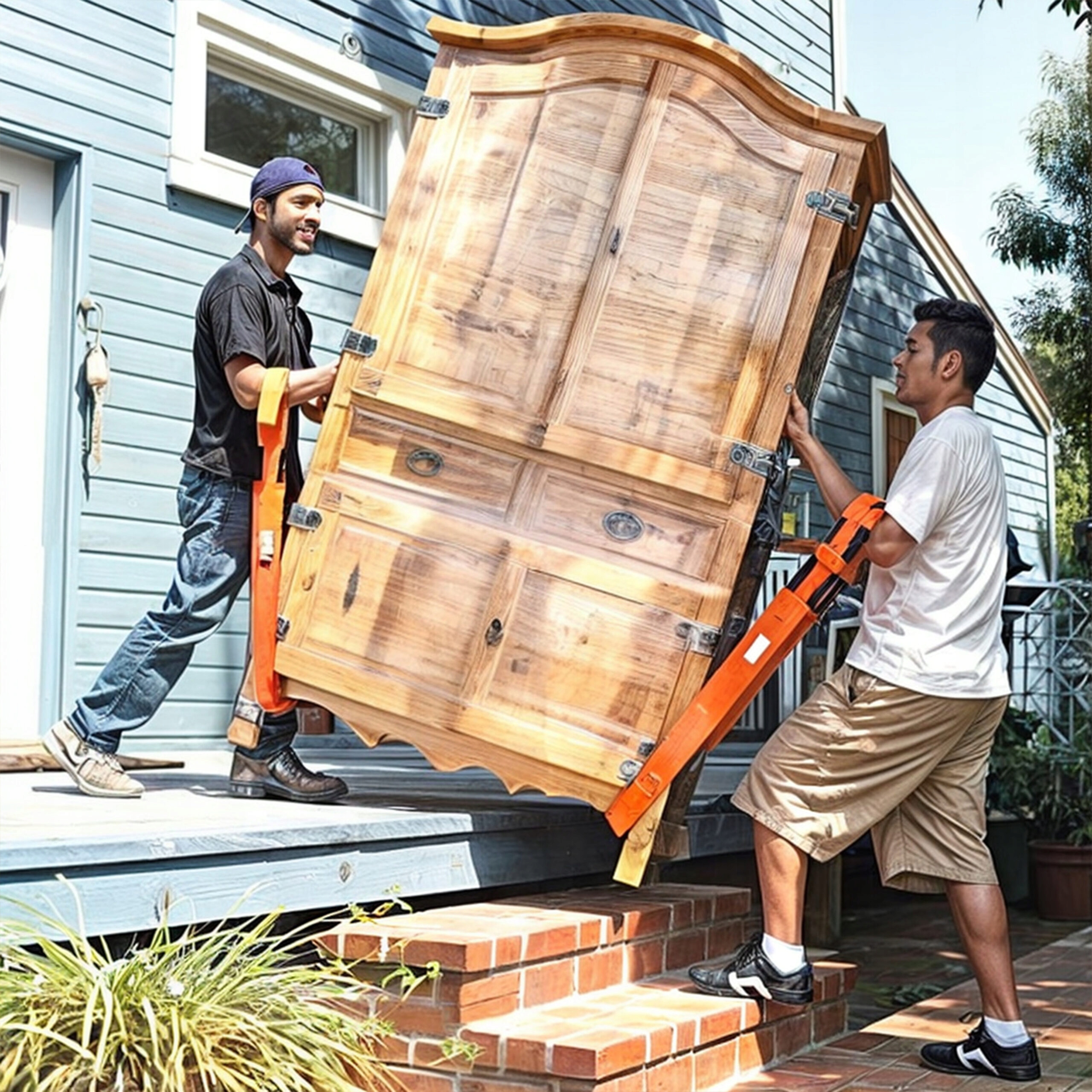 Регулировка длины ремней позволяет адаптировать их к разным размерам и формам мебели, что делает их универсальным инструментом для переноски самых разных предметов. Кроме того, оранжевый цвет обеспечивает их хорошую видимость, что упрощает их расположение и использование.