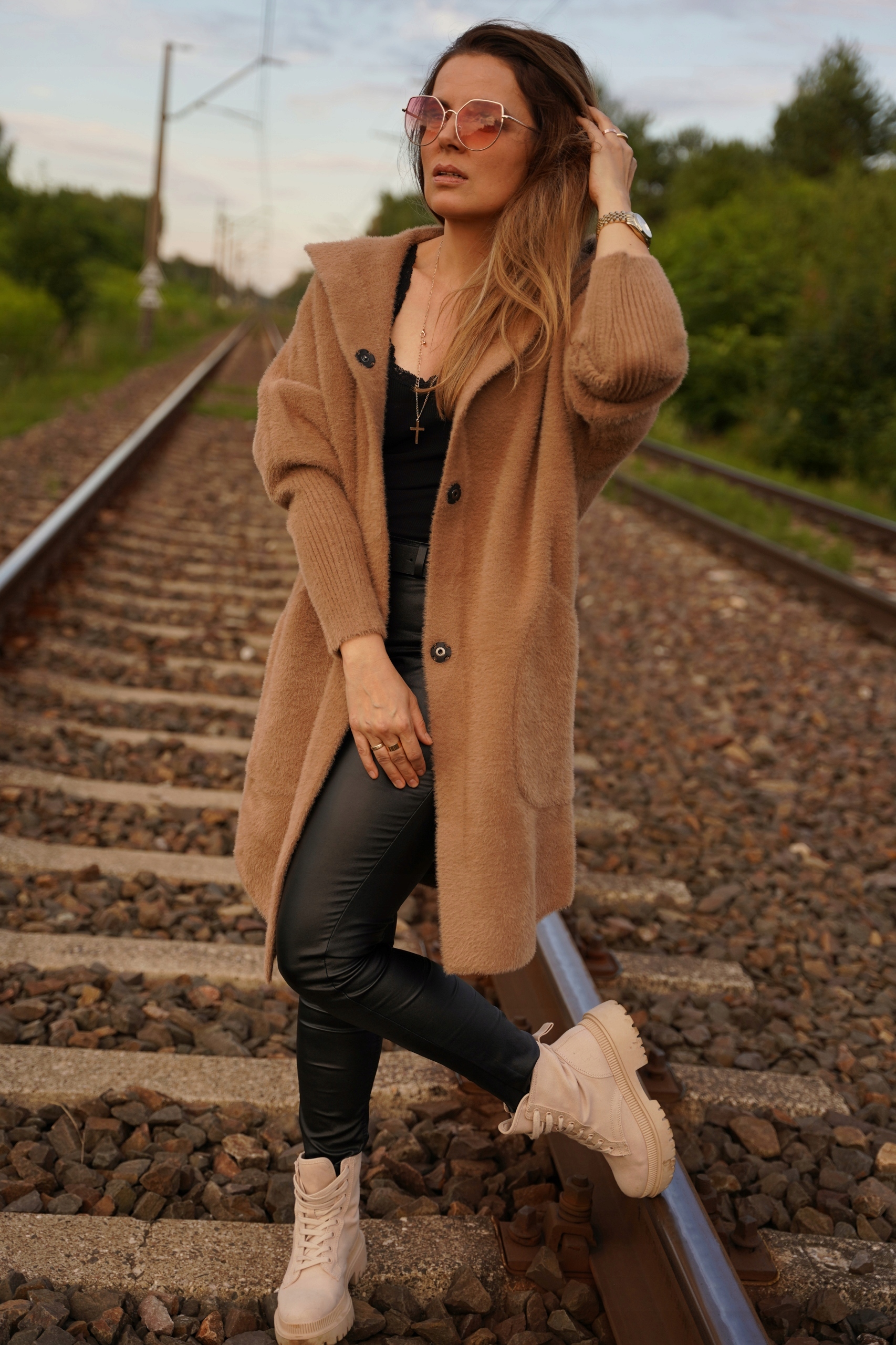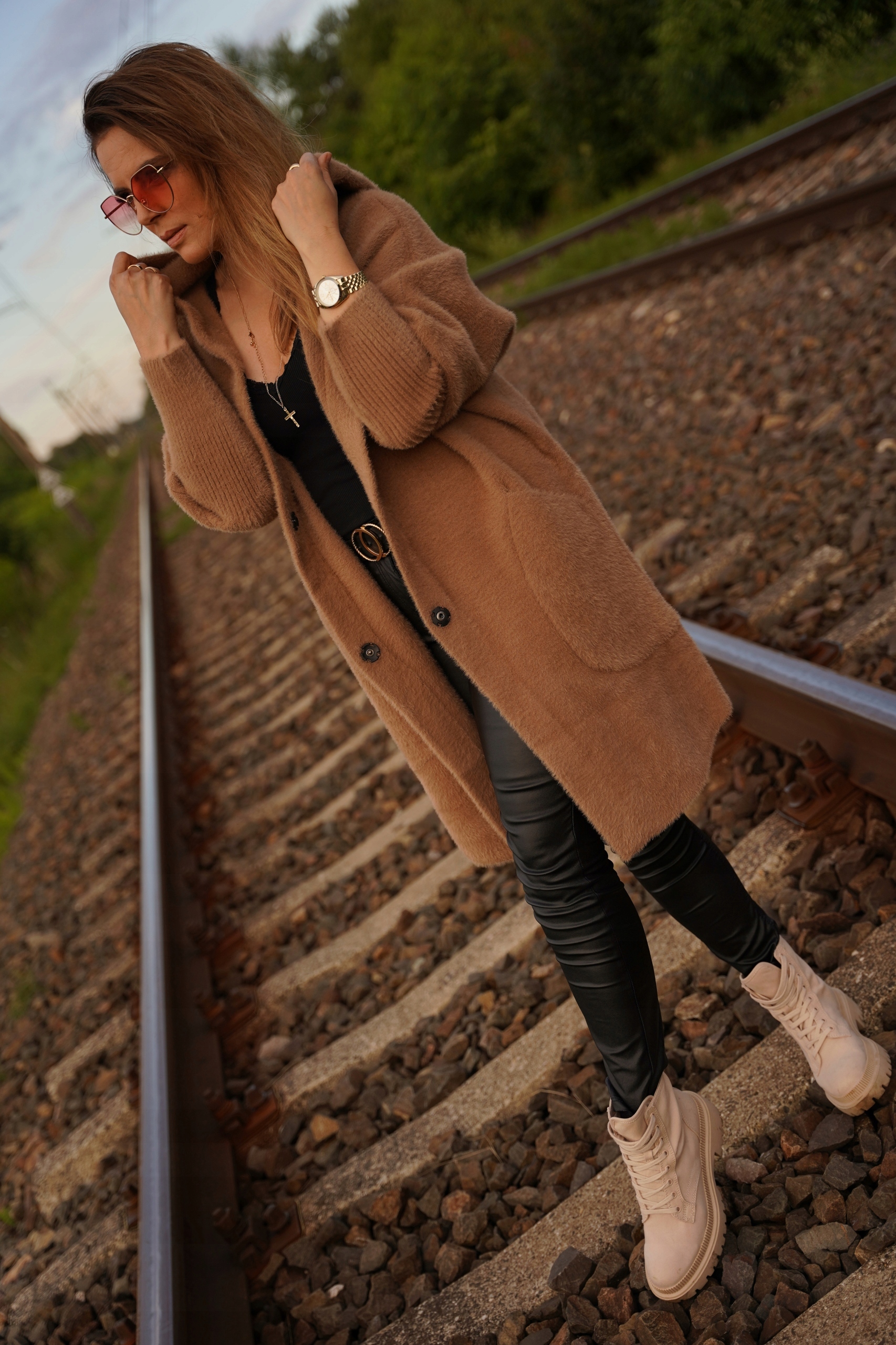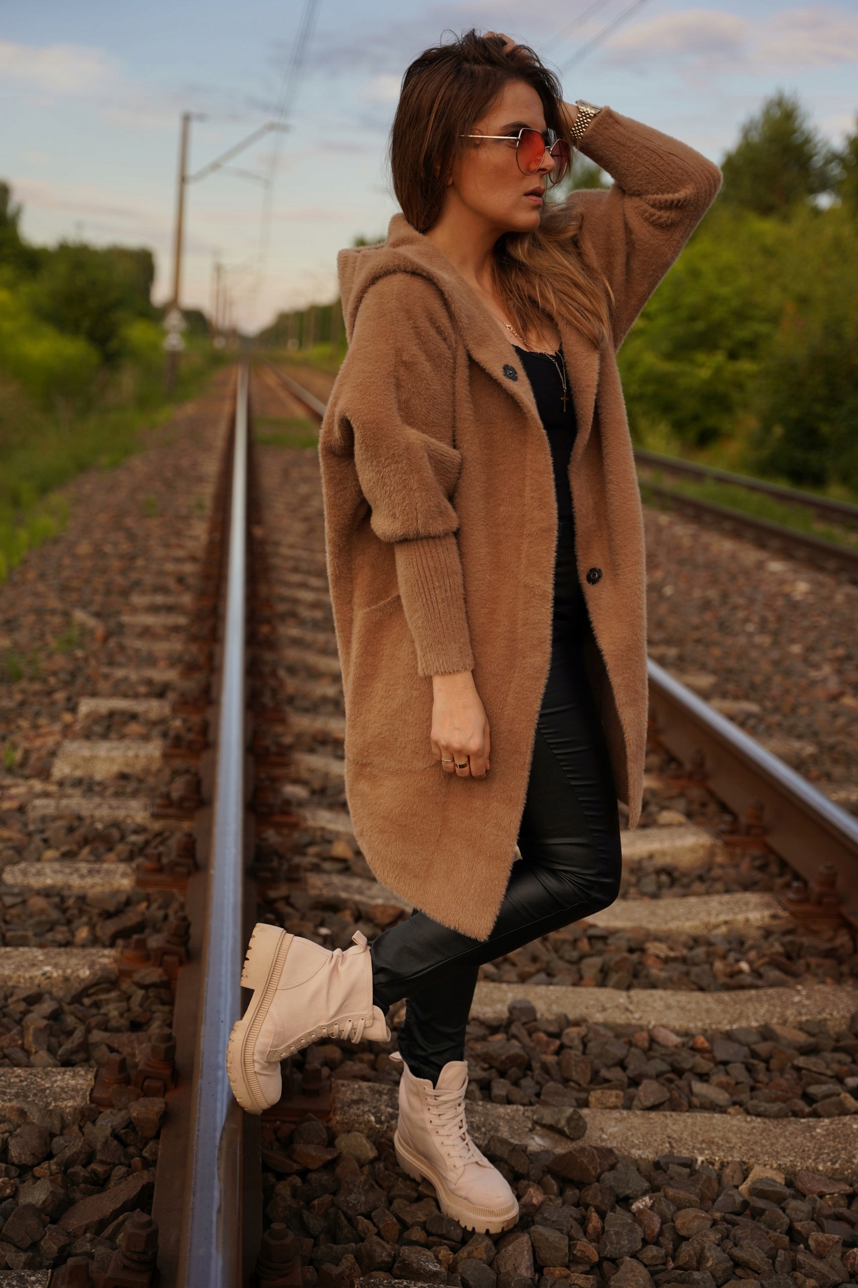 PŁASZCZ DAMSKI ALPAKA ESTE MODEL DŁUGI I SZEROKI Z KAPTUREM oversize CAMEL