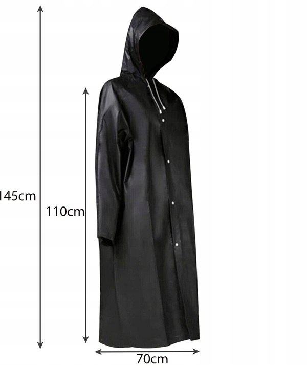 - ДЛИННОЕ ПАЛЬТО + КАПЮШОН – плащ очень длинный и дополнительно имеет капюшон с завязками на конце. Идеальная защита от дождя.