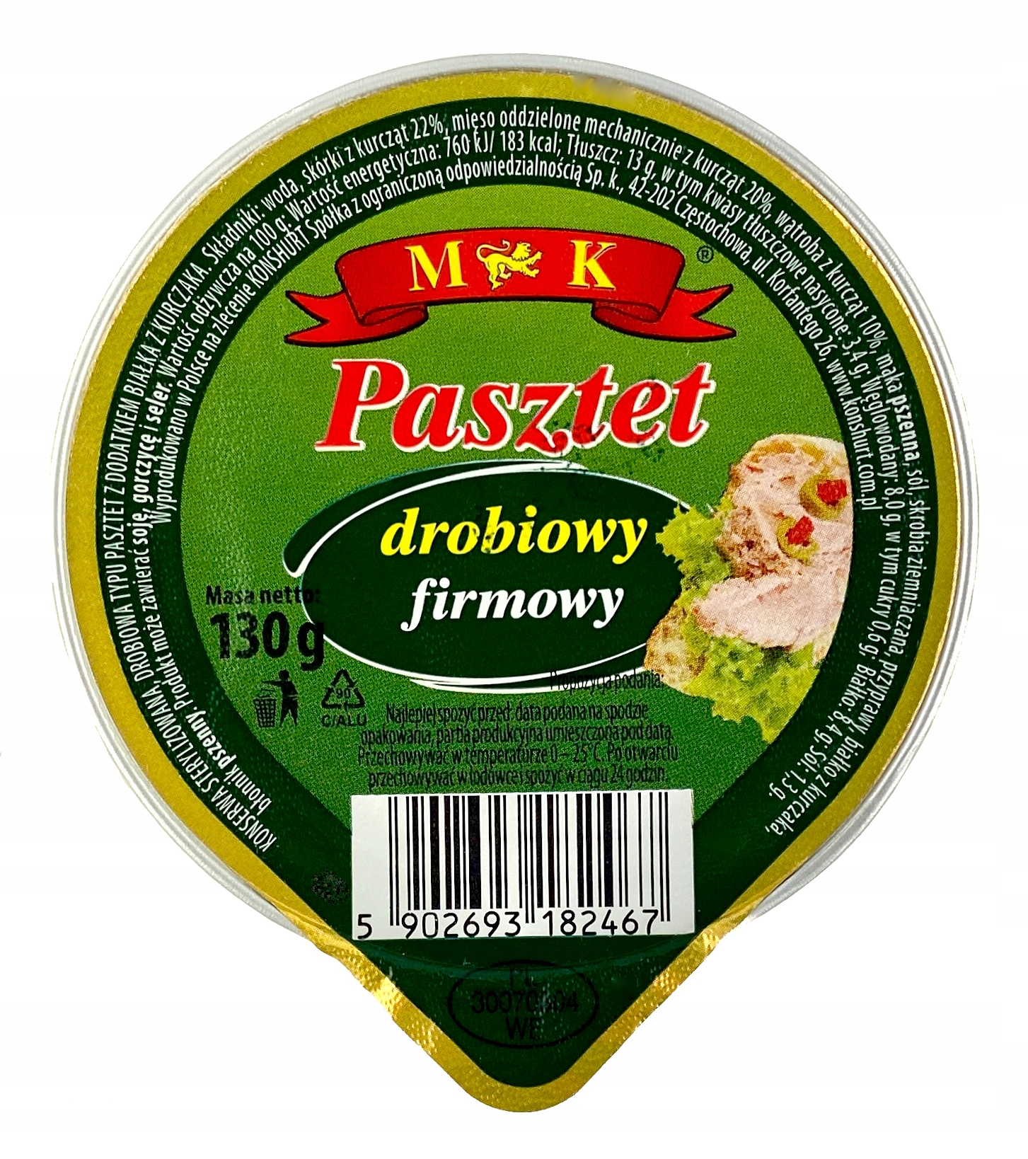 Покупая «Pasztet drobiowy firmowy MK 130g» данный товар из каталога «Паштеты и ценники» вы можете быть уверены, что после оформления заказа, доставки в Украину, вы получите именно то, что заказывали, в оговоренные сроки и европейского качества.