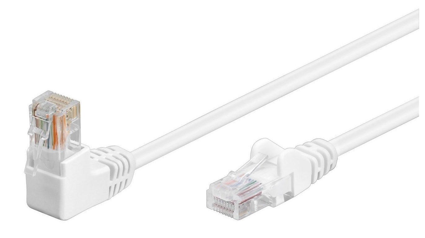 Патчкорд U/UTP, вилка, прямой/угловой 90°, белый, 1 м