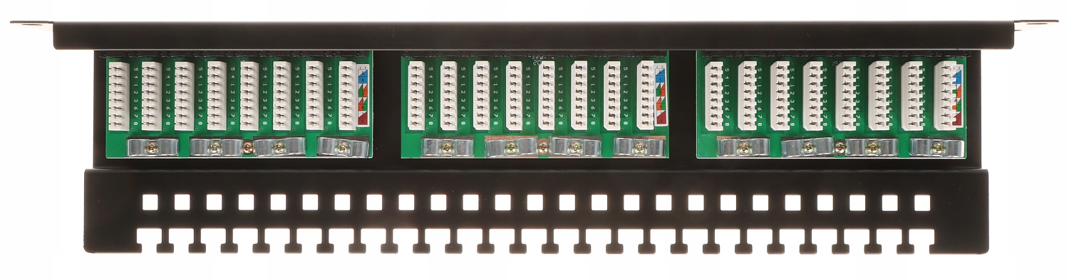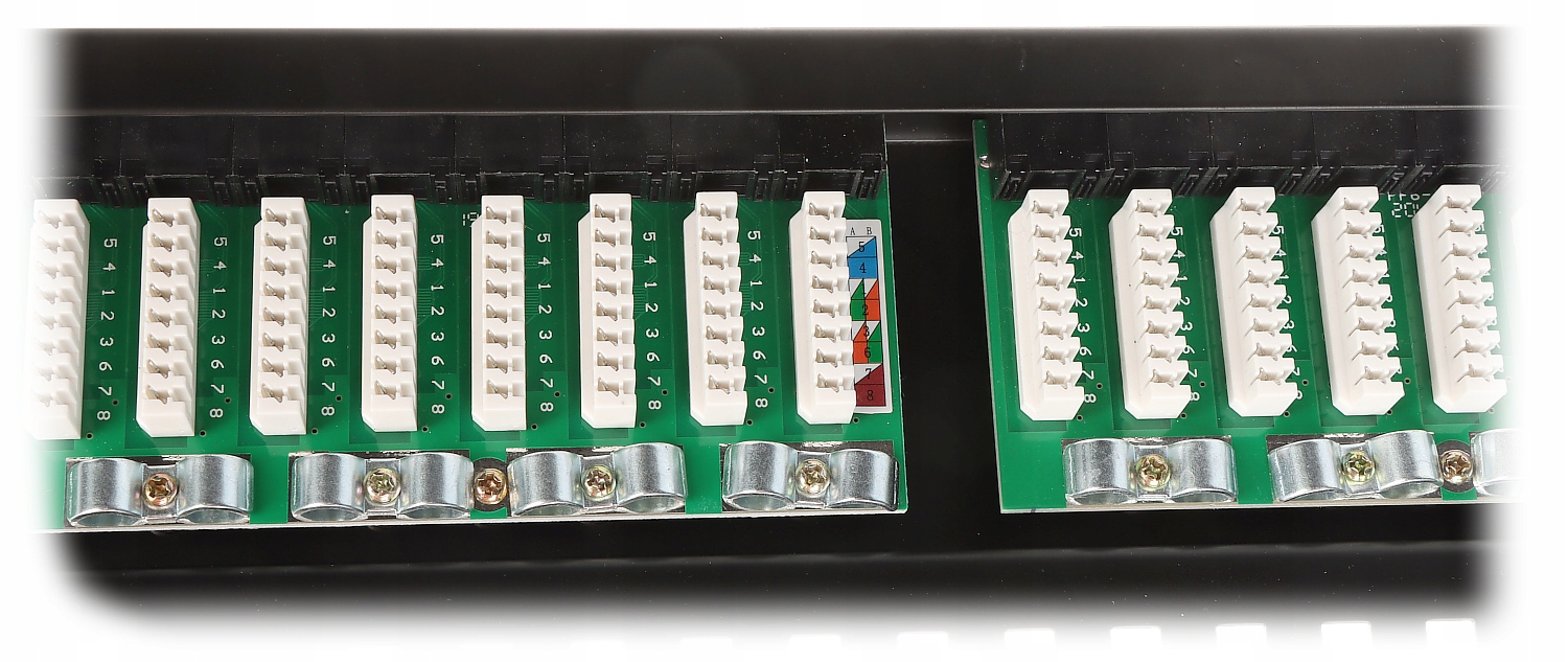 Устройство заделывает структурированную кабельную систему для кабелей UTP категории 6. Устройство монтируется в 19-дюймовый шкаф RACK.