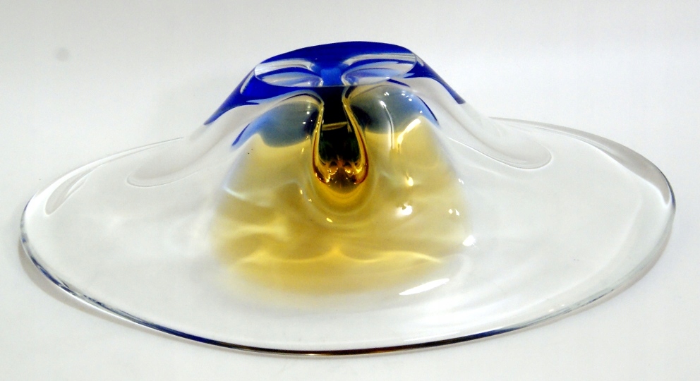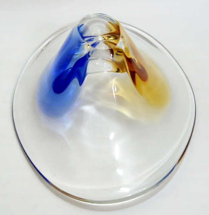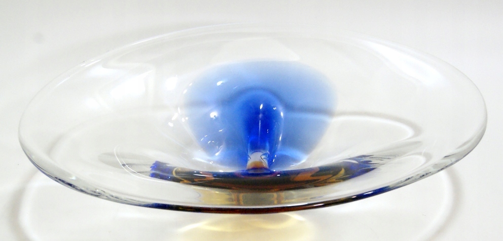 Красивая, старинная, массивная подставка для торта - кабаре - из толстого цветного стекла. Подставка для торта 1960-х годов. Богемия.