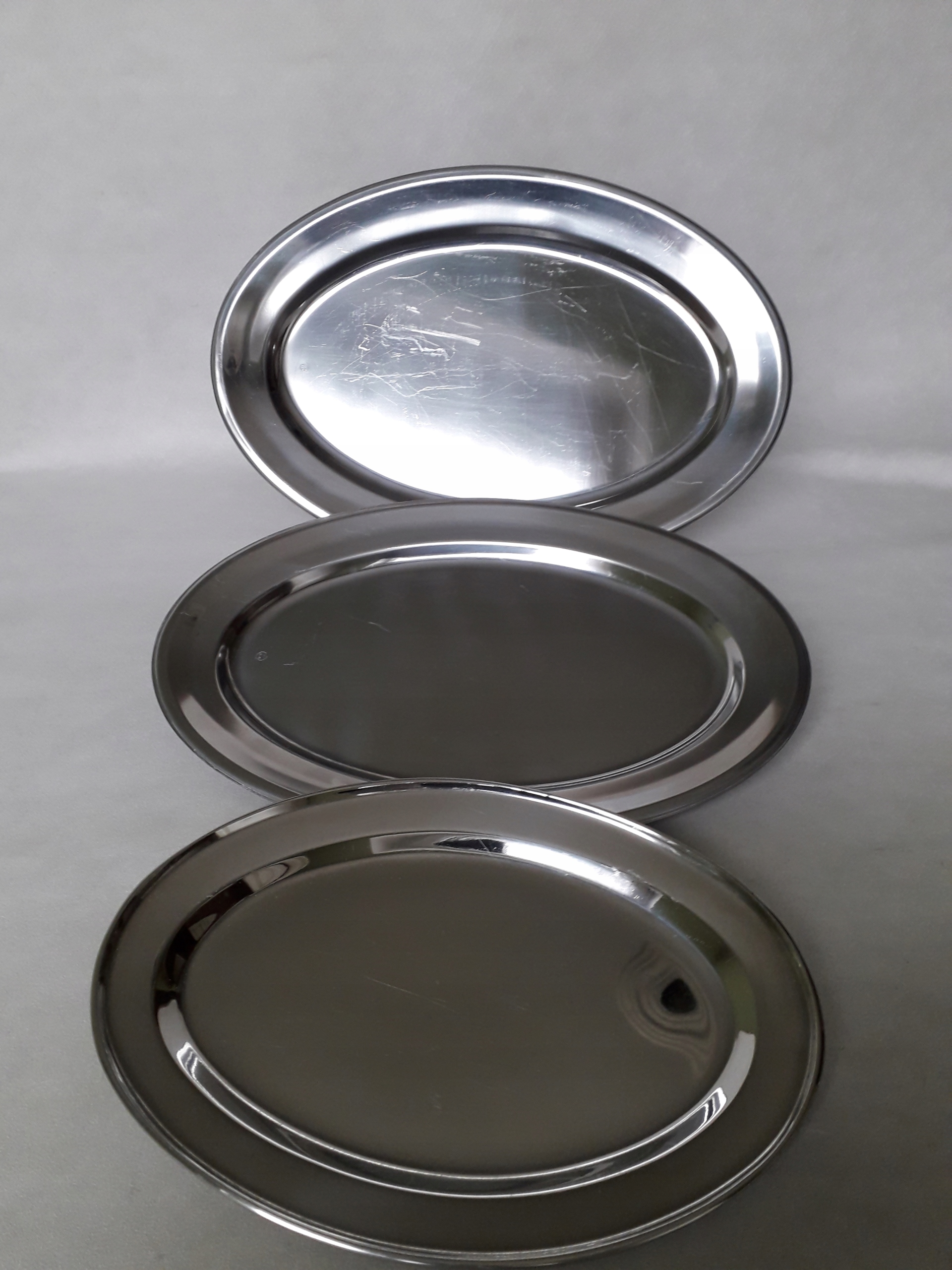 набор из трех из нержавеющей стали- хромированная сталь. Две большие подписанные тарелки, происхождение.