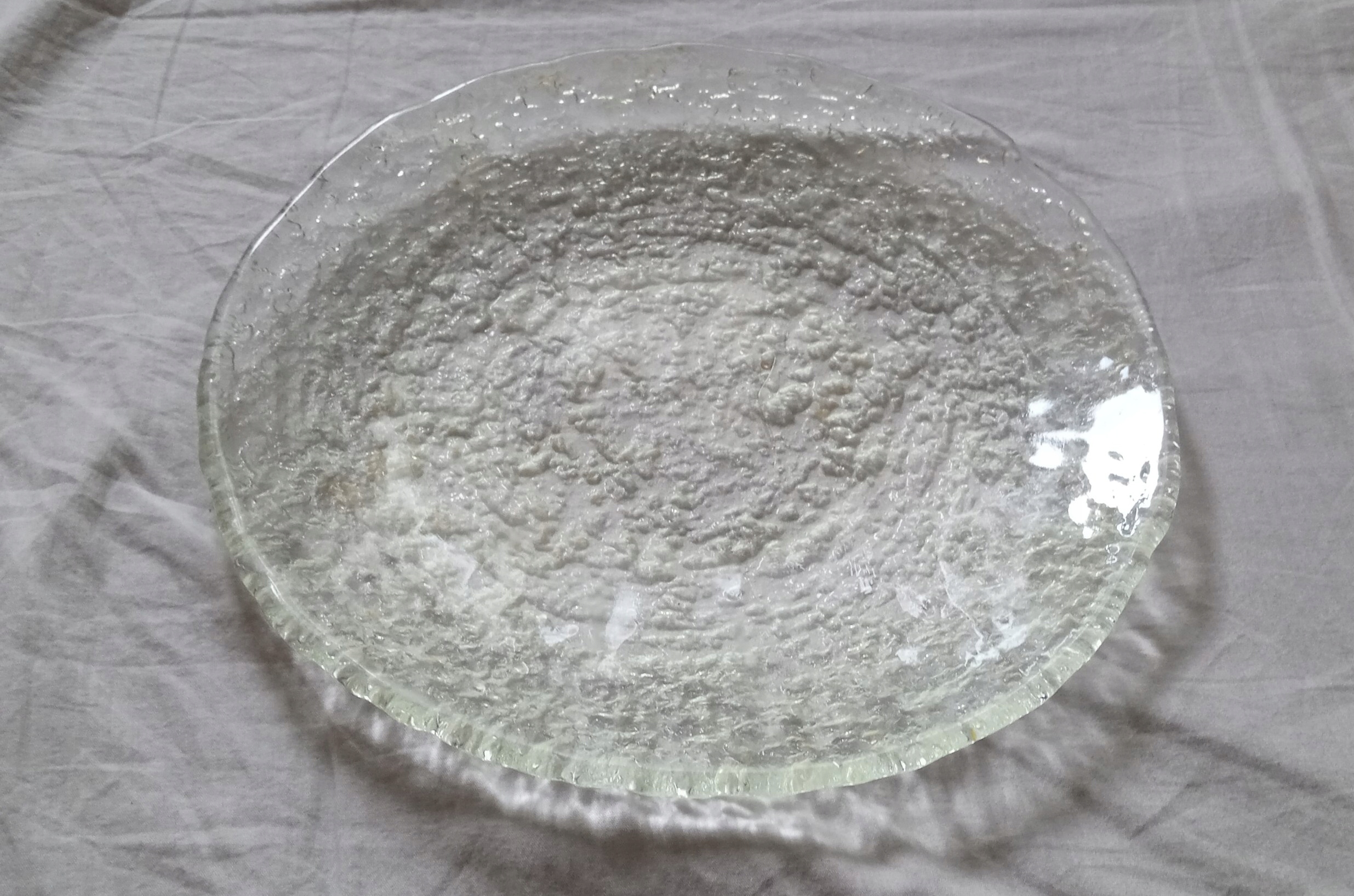 натриевое стекло, нажатое. Толстый прессование, нерегулярный край.