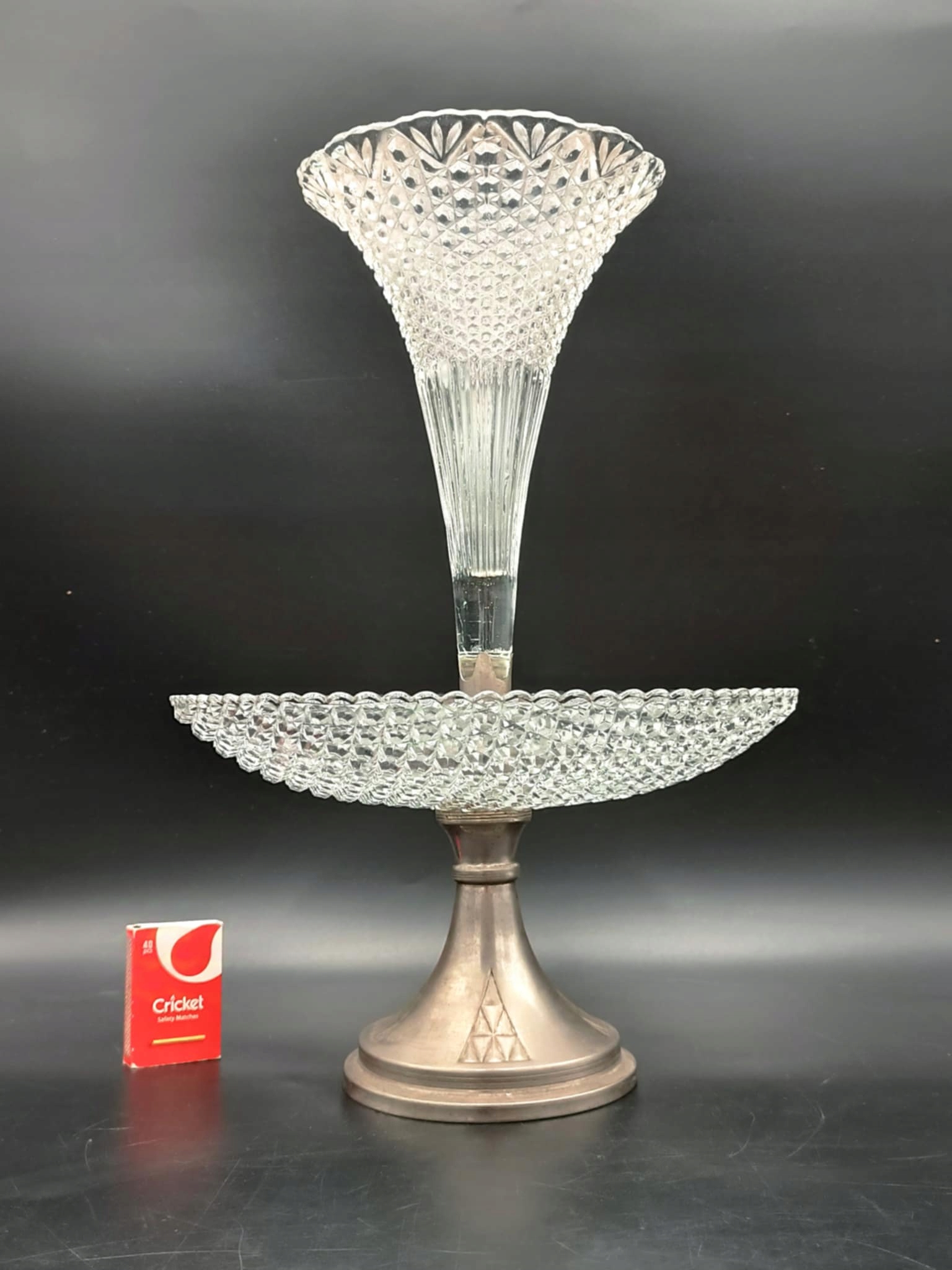 Арт -Вывод с высотой высотой 35 см. Ничто не смешано, оригинальное стекло из эпохи. Состояние на картинках - хорошо с плюсом. Небольшой плоский всплеск у основания чашки (спрятанный в металлической оправке), из внутренней части чашки (и только изнутри) поверхностного масштаба без потерь, скорее всего, дефект фабрики. Оба недостатки отмечены на фотографиях № 12 и 13. Я приглашаю вас !!!