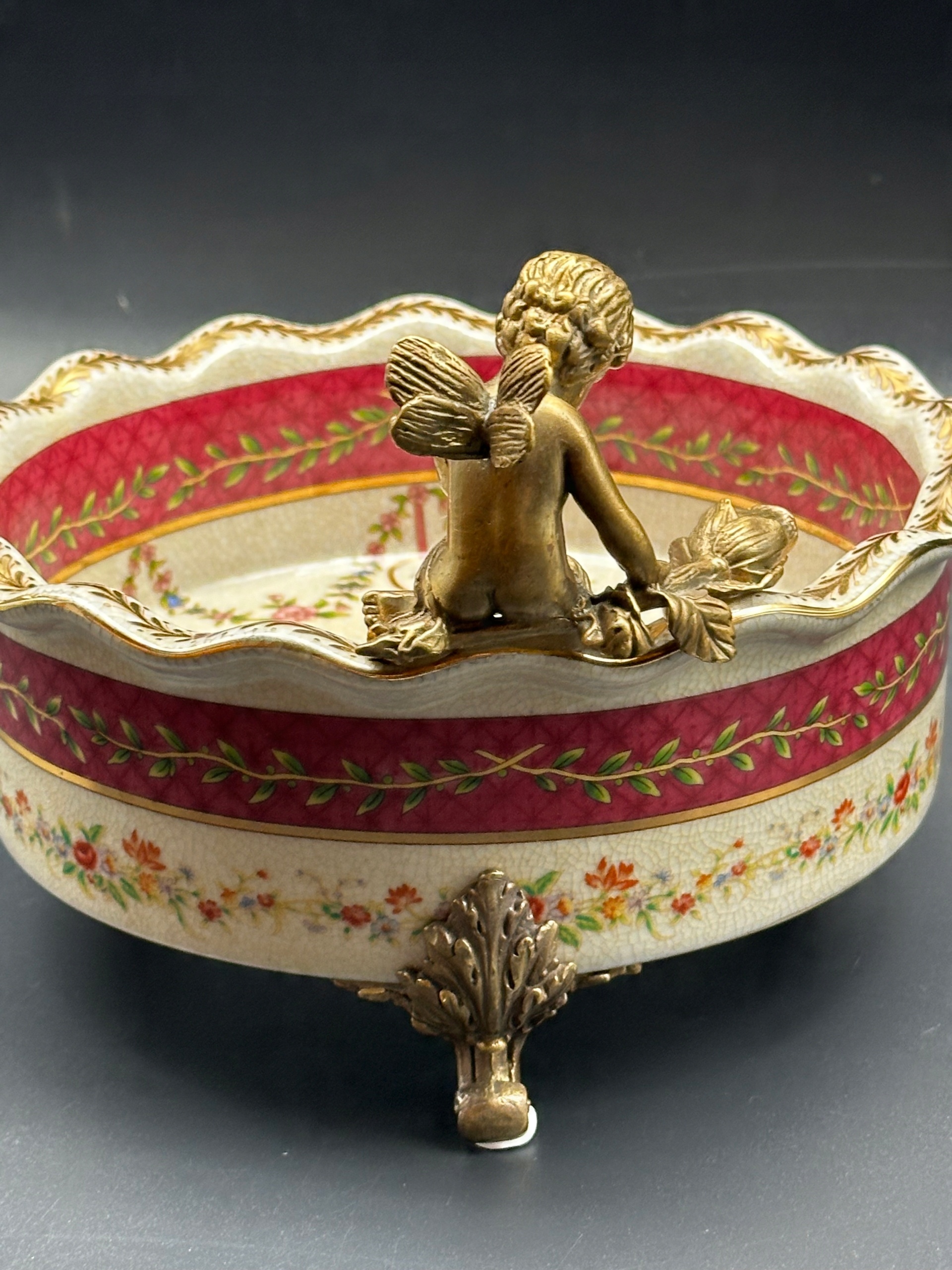 Чаша патера с ангелом на ногах круглая фарфора с коричневым