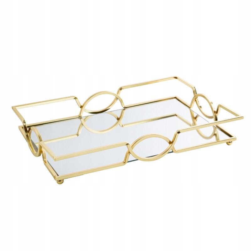 Металлический декоративный поднос с зеркальным дном: 26 см, длина: 38 см, цвет: золото, состав: металл, стекло