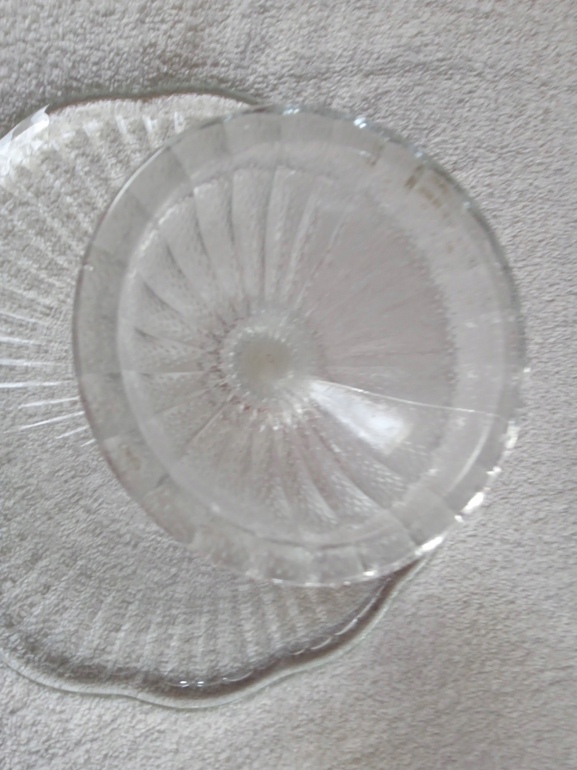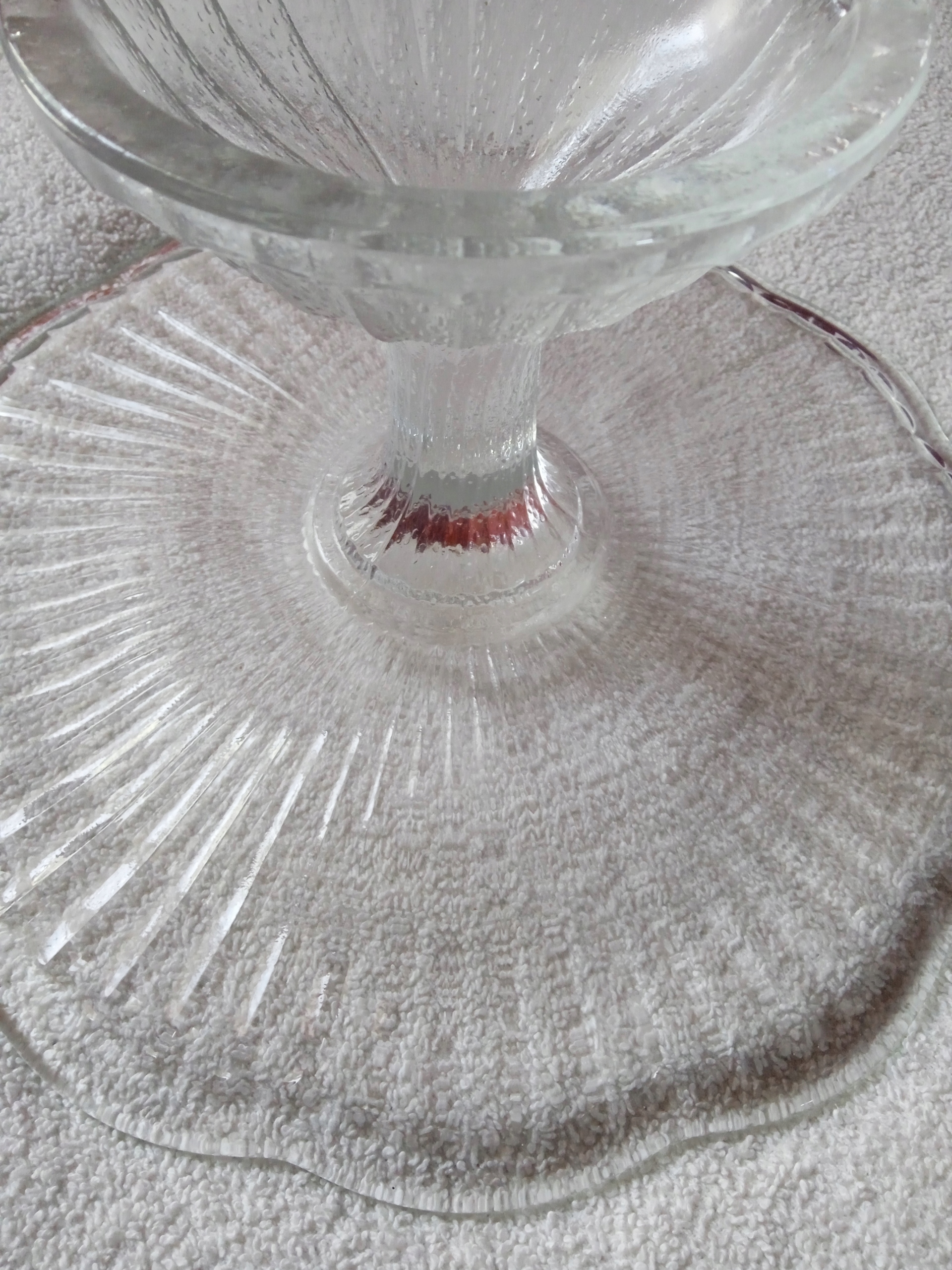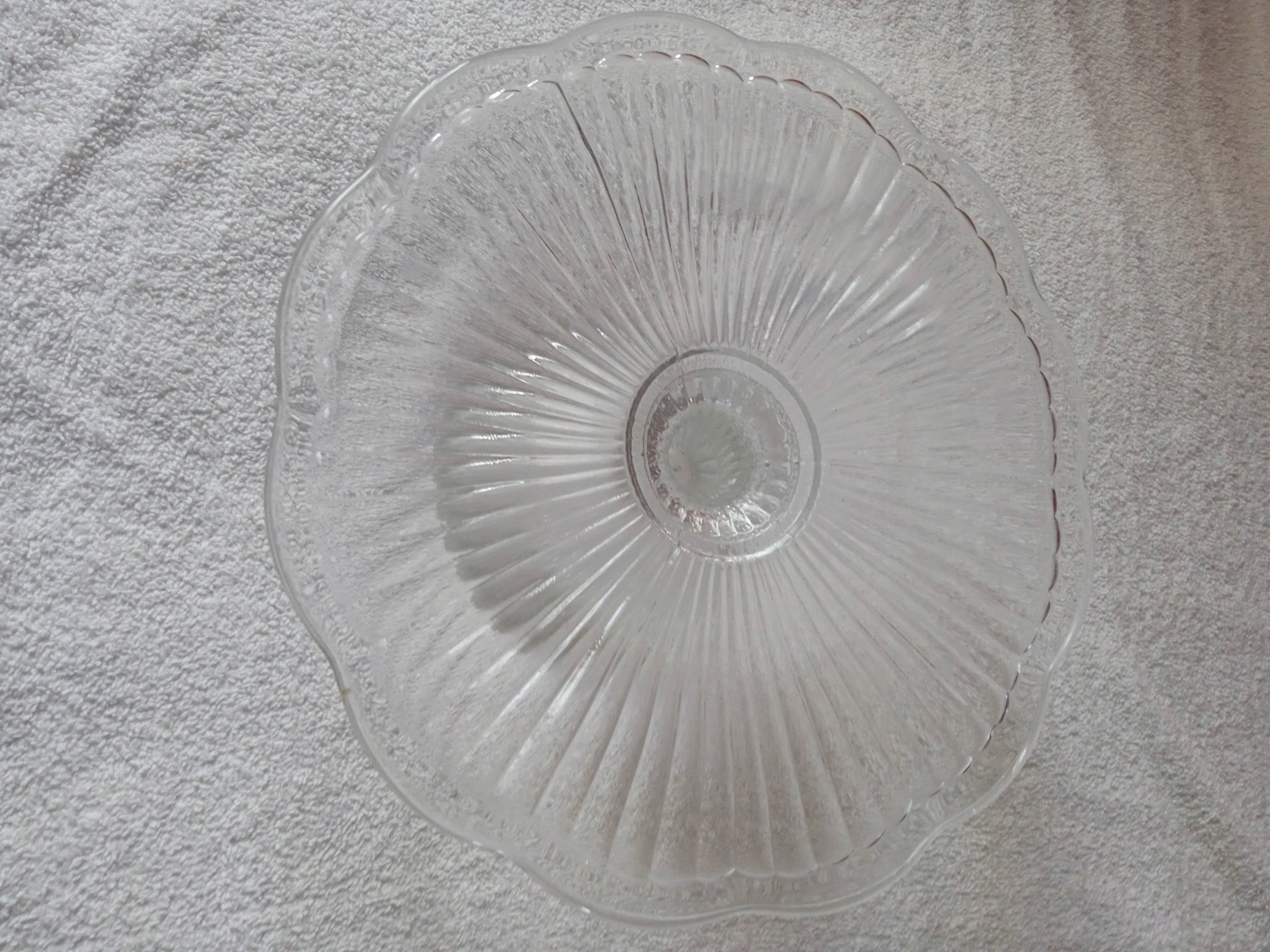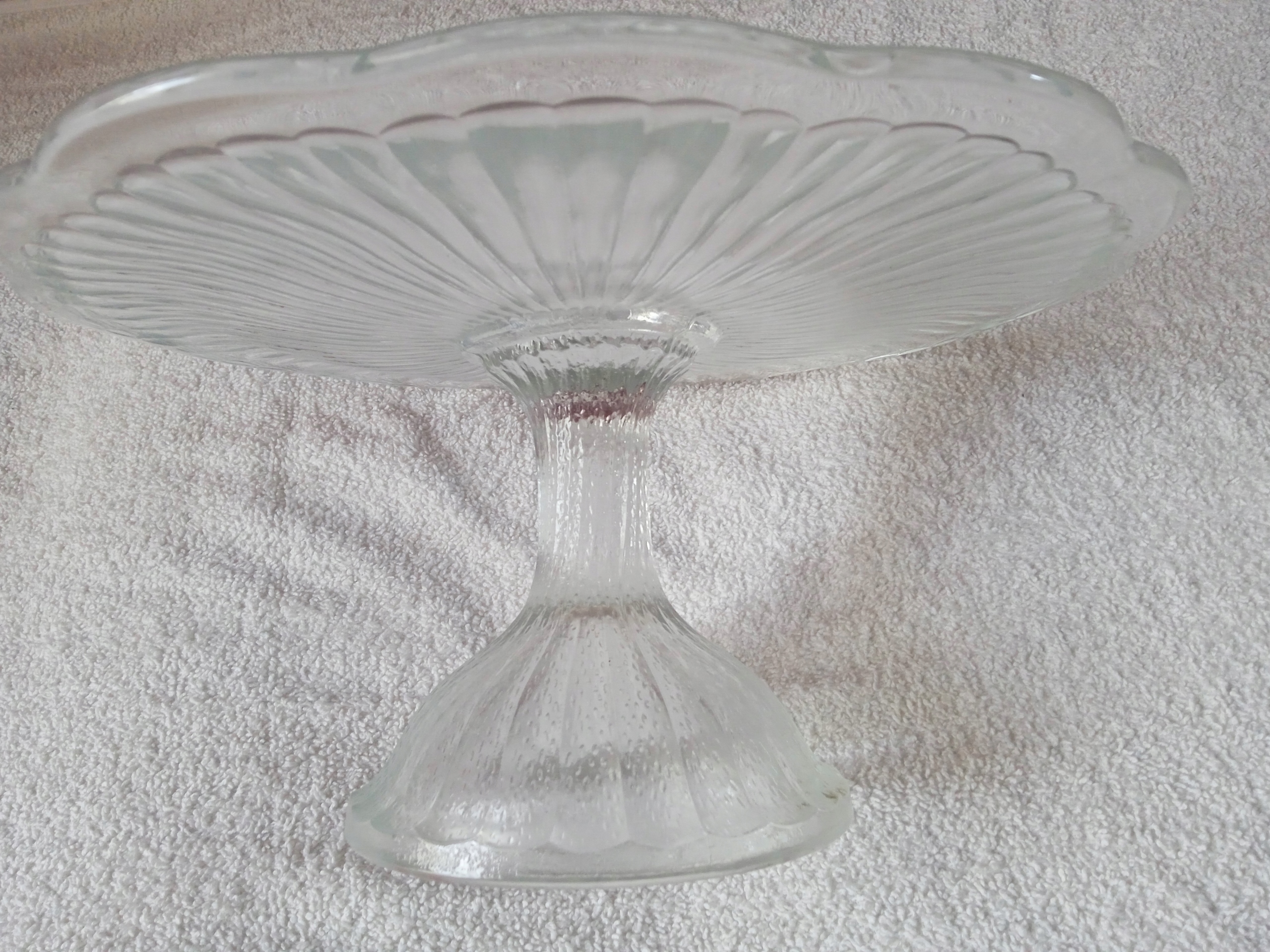 Предлагаю на продажу пластину на ножке производства металлургического завода «Гортензия». В каталоге 1936 года № 101. Состояние хорошее, без видимых повреждений, только посередине есть два волосяных дефекта, незаметных, если о них не знать. Тарелка изготовлена из прозрачного прессованного стекла. Высота 14,5 см. Диаметр 28,5 см. Диаметр основания 12,8 см.