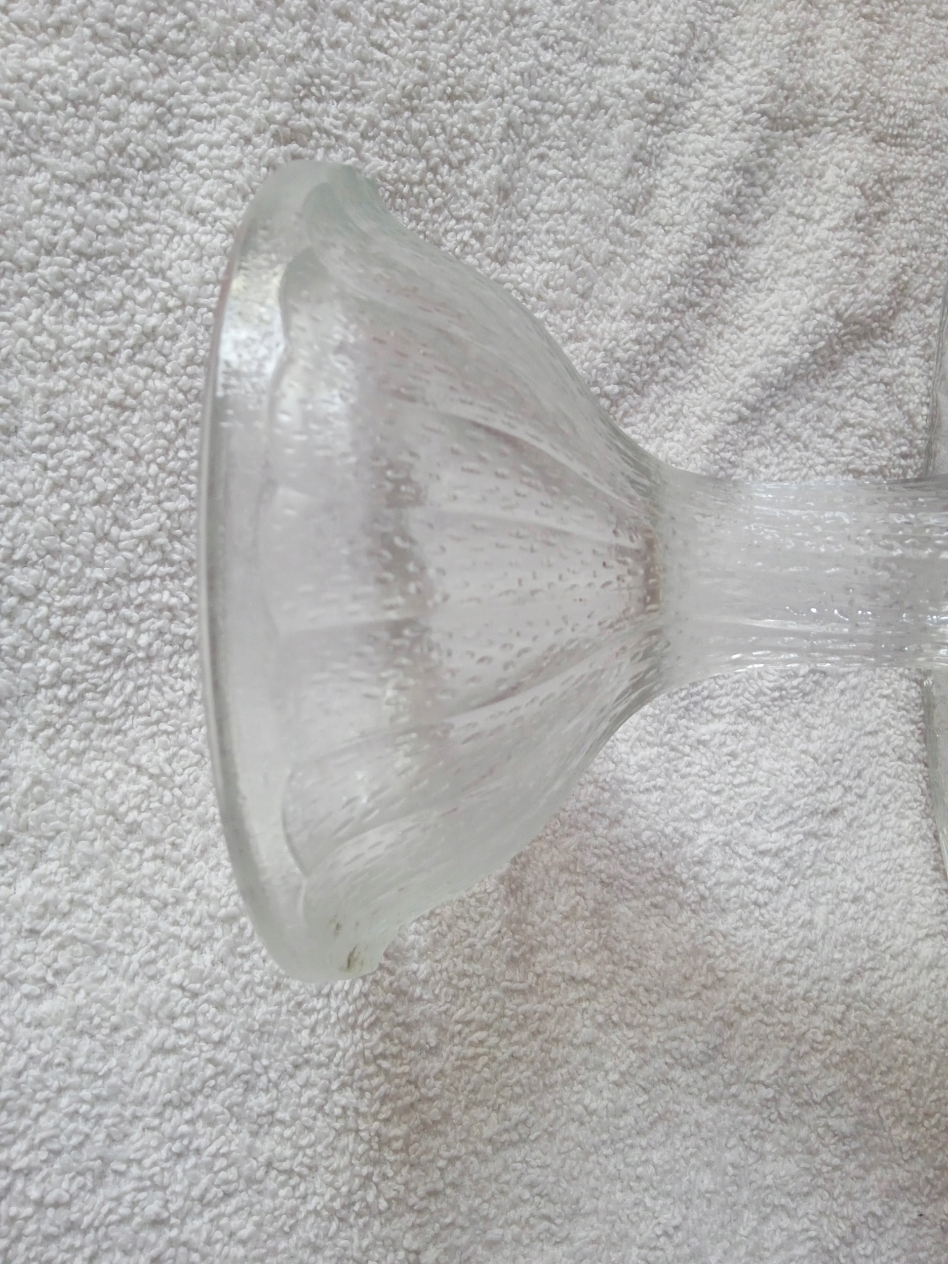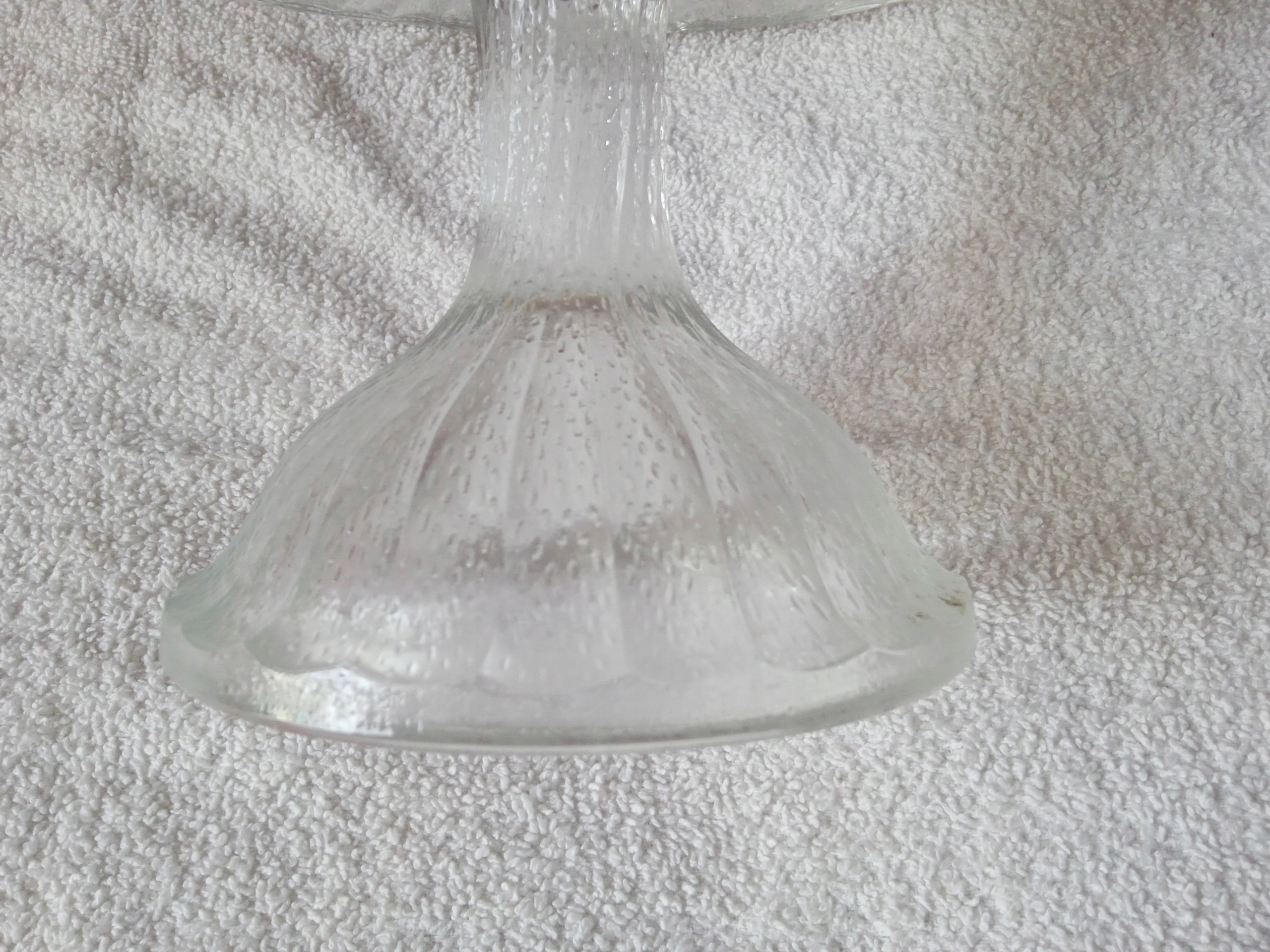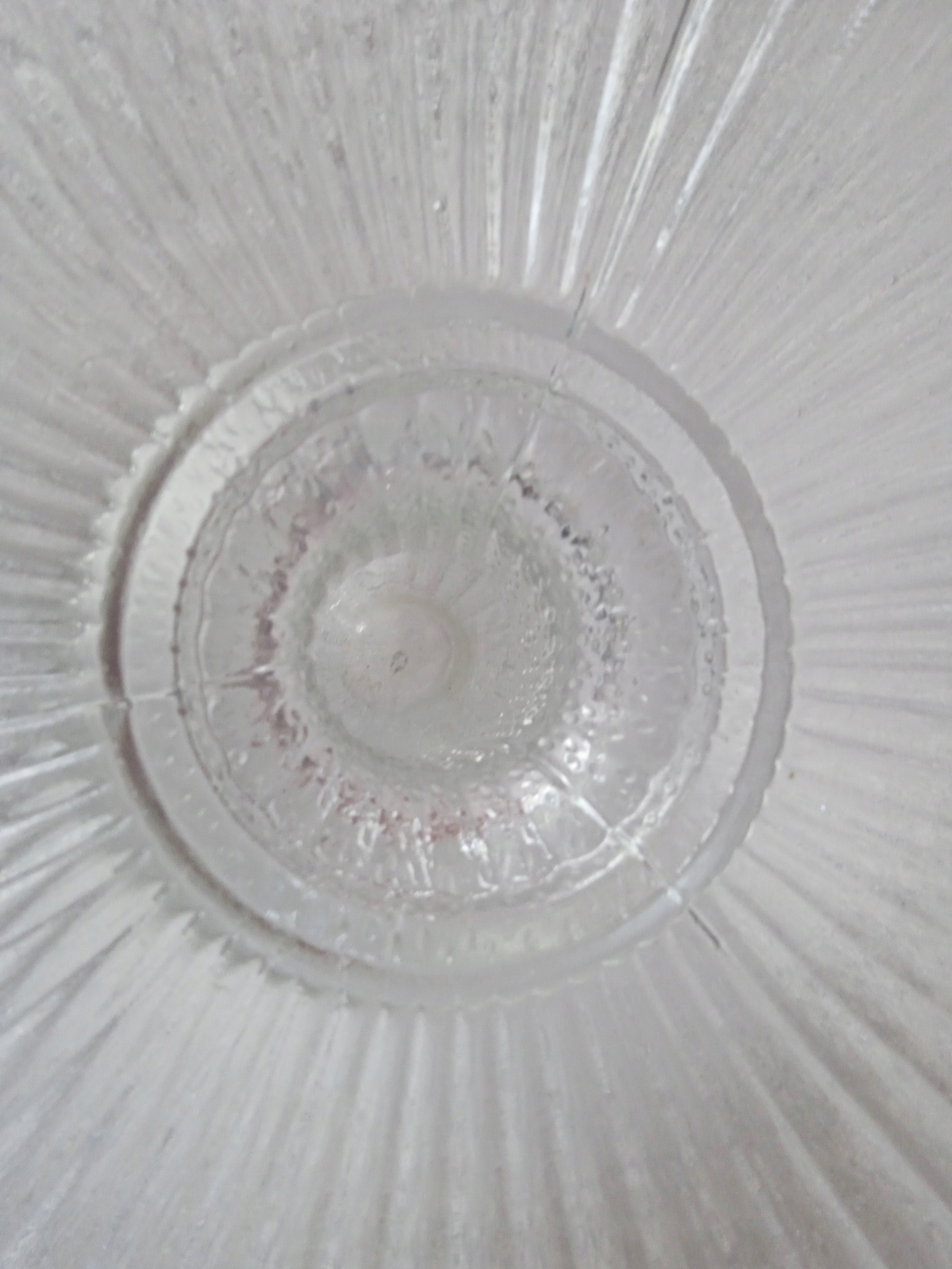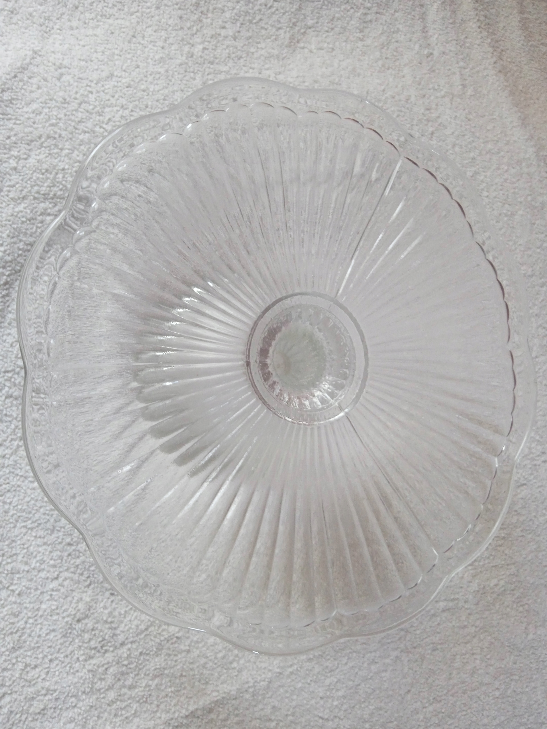 Предлагаю на продажу пластину на ножке производства металлургического завода «Гортензия». В каталоге 1936 года № 101. Состояние хорошее, без видимых повреждений, только посередине есть два волосяных дефекта, незаметных, если о них не знать. Тарелка изготовлена из прозрачного прессованного стекла. Высота 14,5 см. Диаметр 28,5 см. Диаметр основания 12,8 см.